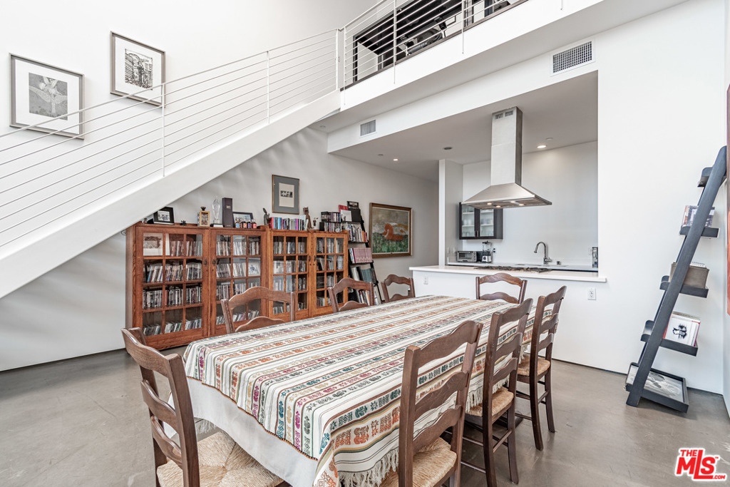 Dramatic 2 story top floor penthouse in award winning architect Lorcan O'Herlihy's inspiring 10 unit complex located just blocks from Larchmont Village. This light filled unit features 18 foot ceilings, walls of windows and expansive walls for artwork. The main level features concrete floors, open kitchen with quality appliances, open and airy living and dining spaces that opens out to a private balcony, guest bedroom with private bath and a laundry room. Climb the architectural staircase and find an office area with views plus a large owners suite with additional views to the west. Secure parking for 2 cars. Well run complex with low homeowner dues and a rare find in this price point.