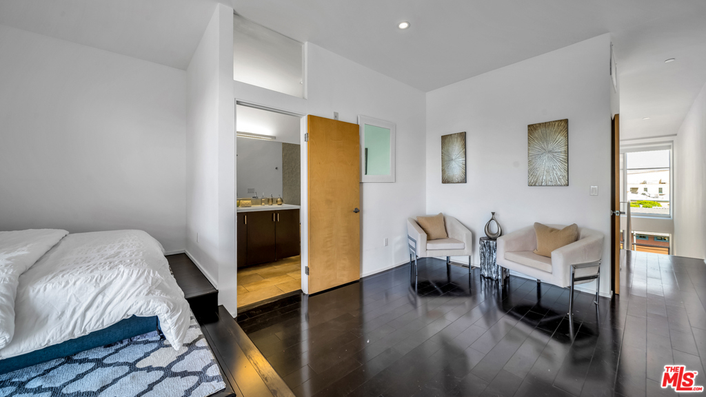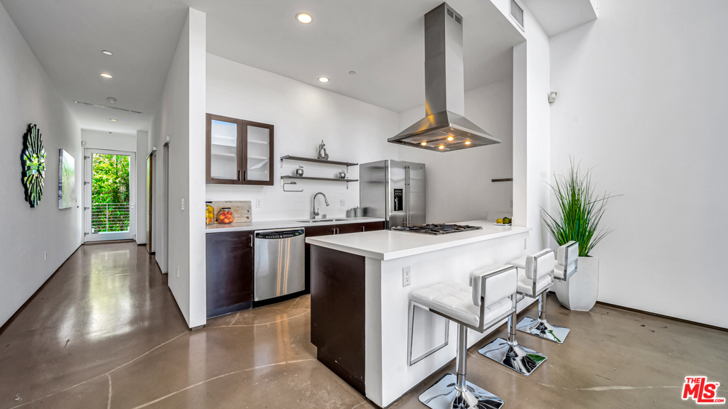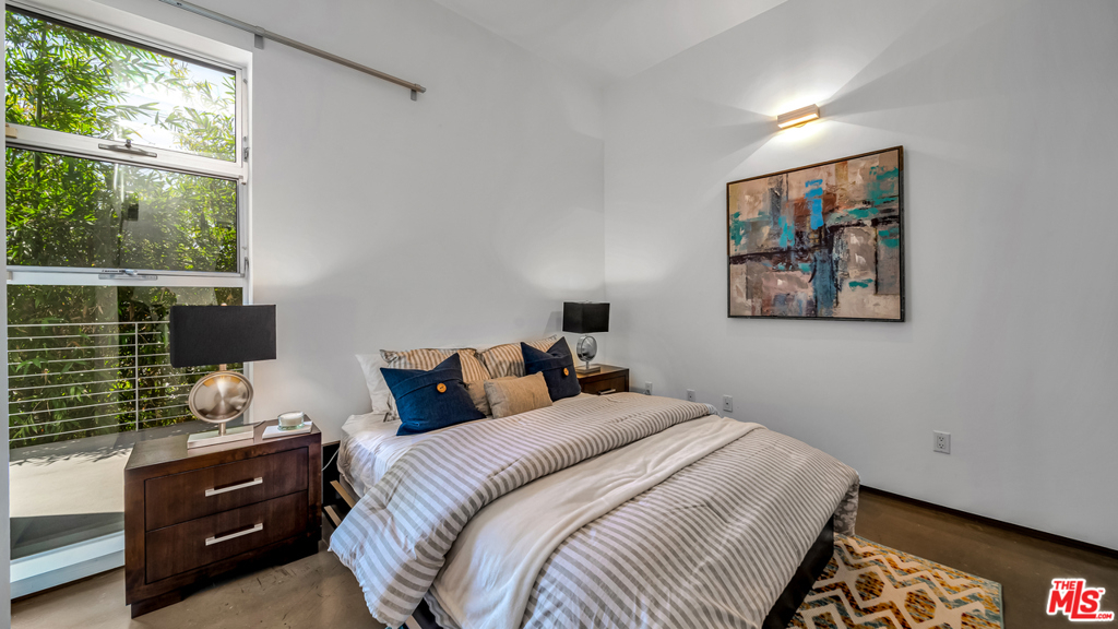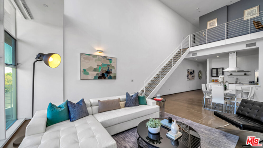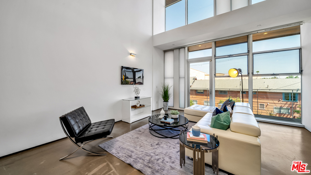 This exceptional sun-filled unit, designed by renowned AIA award-winning architect, Lorcan O'Herlihy, The 19 + foot double-height ceilings, with walls of glass give this penthouse a unique and trendy feel. Natural light from the east and west illuminate both balconies and the beautiful custom kitchen with stainless steel appliances, polished concrete, and wood floors and lead you to the upstairs workspace and master bedroom. This open floor plan unit features a second-floor master bedroom suite, with a giant walk-in closet, custom bathroom, and its own private balcony. A bonus room greets you at the entrance perfect for guests, or as a second bedroom, home office, or media room. This penthouse unit is newer construction with 2 assigned gated parking spaces and only 9 other units. Located across from Paramount Studios, with Larchmont Village nearby, entertainment, restaurants, and shopping is just around the corner!