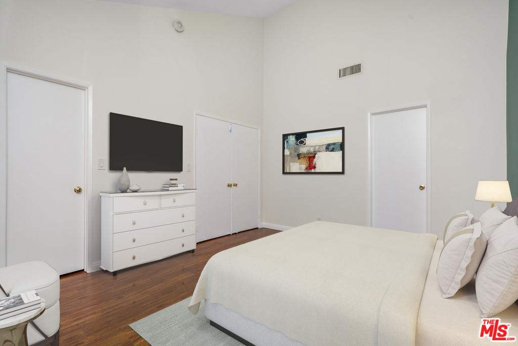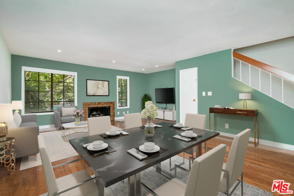If you are looking for outdoor space and close proximity to all, this property should be at the top of your list! Located in the desirable Museum Square neighborhood of Miracle Mile - a stone's throw from LACMA, La Brea Tar Pits, Peterson Museum, Equinox and the highly anticipated Academy Museum of Motion Pictures & Metro Purple Line. Set back from the street, this spacious townhouse-style corner unit offers a wonderful floor plan with one common wall. Take a break from your Zoom meetings and relax on your private patio, perfect for al fresco dining. Ground level features an open-concept living room with a gas fireplace, dining area and powder room. Kitchen includes newer stainless-steel appliances, farm sink, quartz countertops, glass tile backsplash and a breakfast bar. Upstairs features two en-suite bedrooms, vaulted ceilings, laundry area with side-by-side washer/dryer and two private balconies perfect for relaxing. Short distance to The Grove...Property is virtual staged.