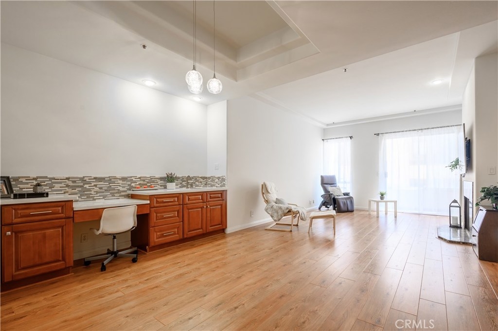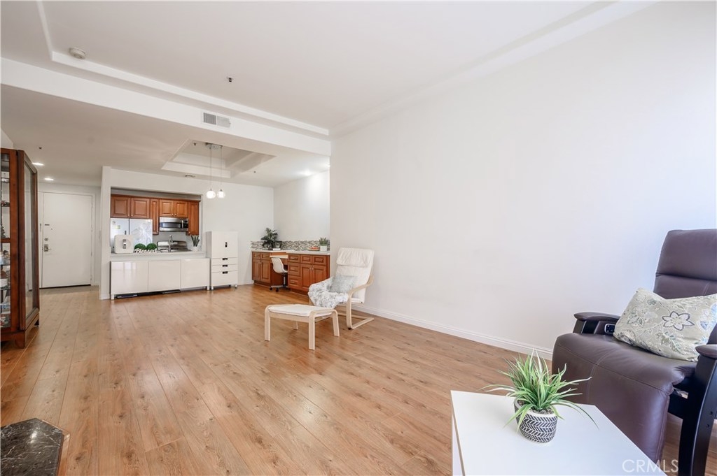 Come to this gorgeous condo located conveniently in the attractive Hancock Park region. This home boasts roughly 1,457 square feet of living space and is the largest model in its building. The home consists of a 2 bedroom 2 bathroom plan, along with several privileges such as a fireplace, pristine hardwood floors, and a high ceiling throughout. When you walk into the remodeled kitchen, your eyes will immediately set on the Stainless steel appliances and the quartz countertop. Step into the master bedroom, where you can see numerous wonderful features including a walk-in closet and a private bathroom completed with shower and spa tub. This model has in-unit washer and dryer area, communal gym, and two parking spaces. The complex is also near the Larchmont Village, Wilshire Country Club, Paramount Pictures Studio, and 101 freeway. Don't miss out on this one-of-a-kind home!