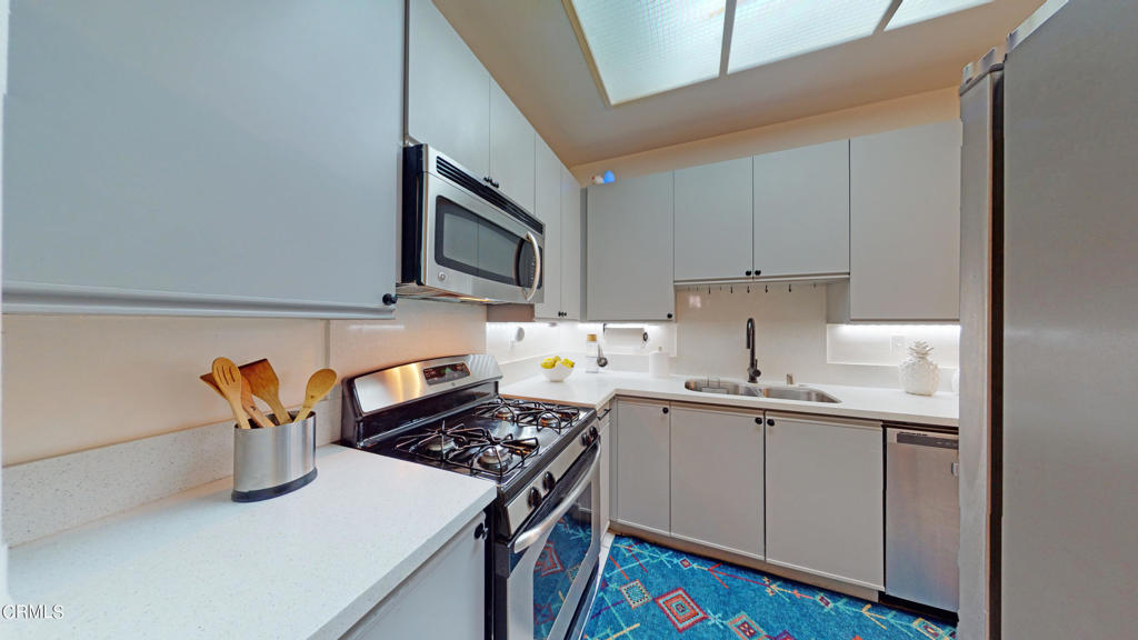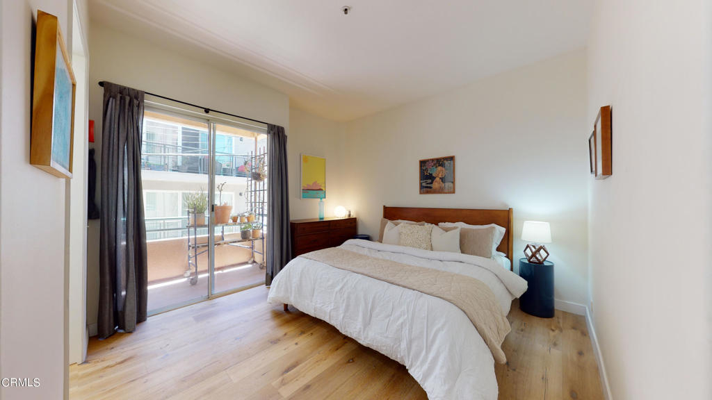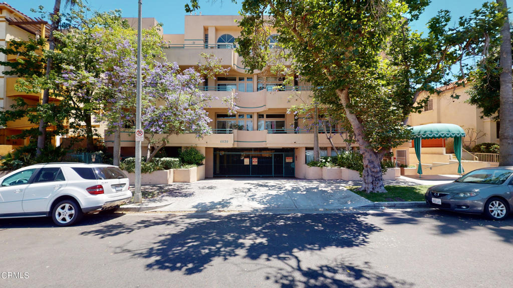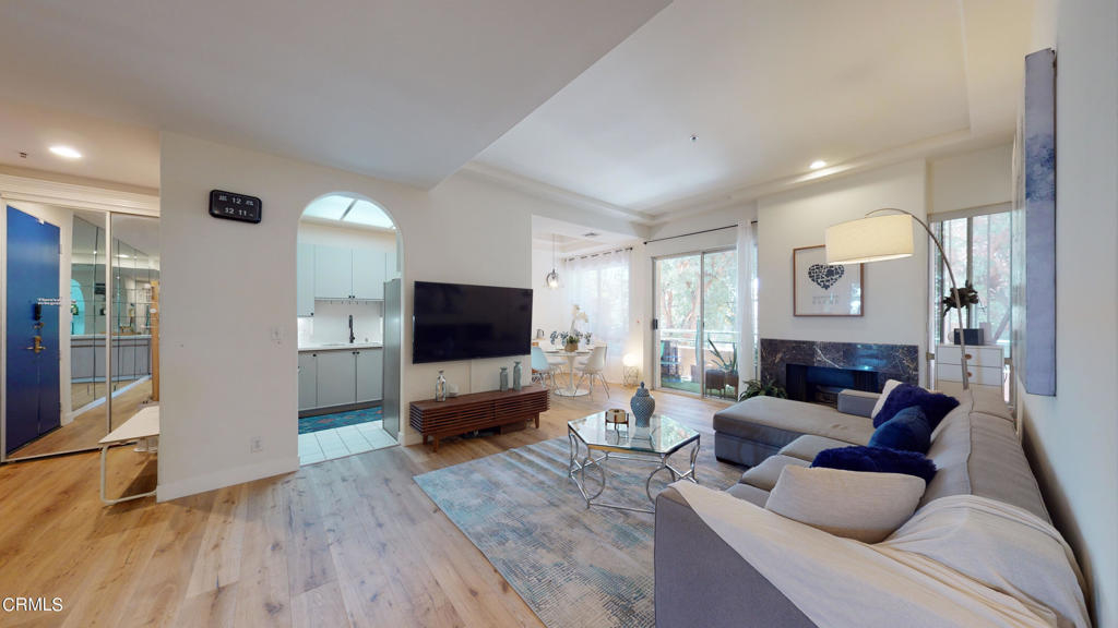 This charming single story condo is located nearby Larchmont Village in Hancock Park. The living room has a fireplace, large windows, and wood floors. The sliding glass doors lead to a balcony that is perfect for plants or relaxation. The dining area and kitchen are perfectly positioned by the living room. The kitchen has nice cabinets, stainless steel appliances, and quartz countertops. There is a convenient side-by-side washer and dryer closet and a large full bathroom in the hallway. There are two spacious bedrooms. The primary bedroom has a walk-in closet with custom shelves. There are two assigned tandem parking spots located in the gated underground parking.