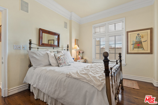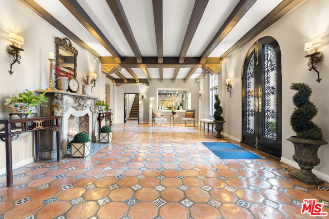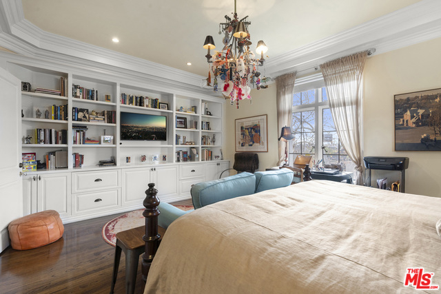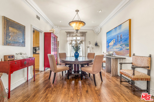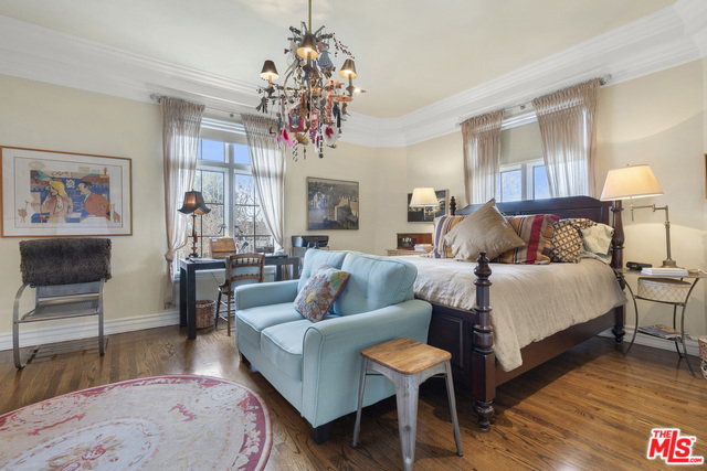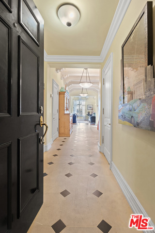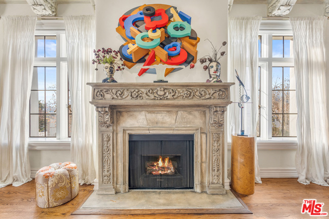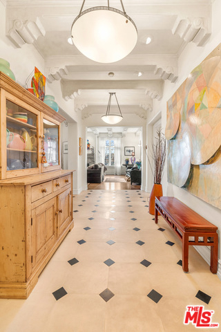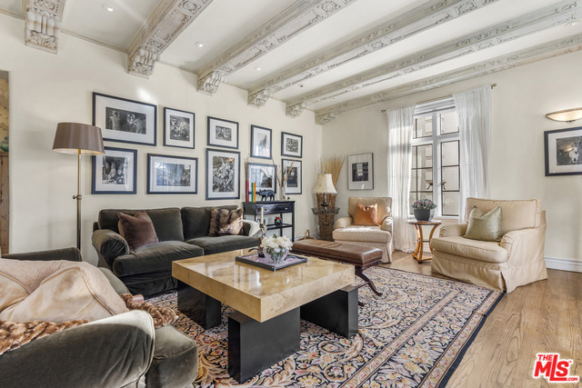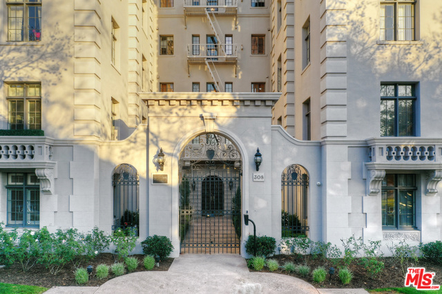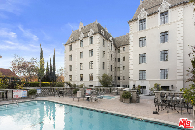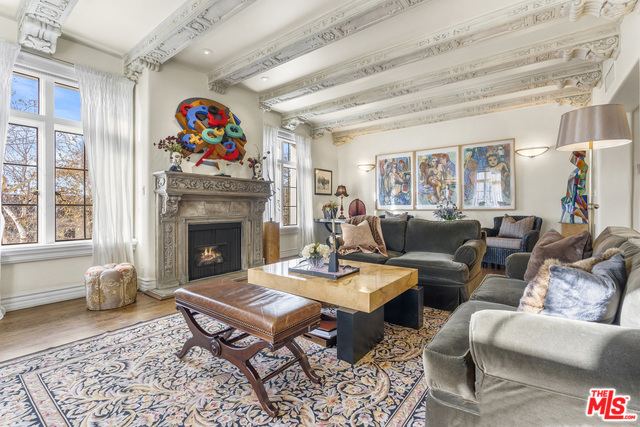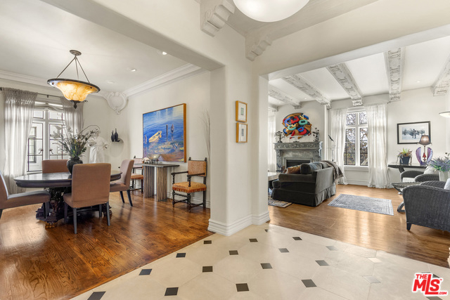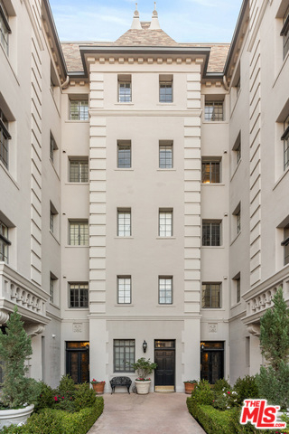 Stunning 4 bedroom North West corner apartment in the legendary 1920's Faubourg St. Denis Bldg. Incredible details include 28ft entry hall with carved beam ceilings, large formal dining room, large scale elegant Living room with high ceilings, stone fireplace, steel frame windows overlooking trees and entry courtyard area.Expansive art walls, recessed lights, hardwood floors, chef's eat in kitchen with top appliances. Master suite with custom built in bookcases, cabinetry, walk in closet and remodeled bath.2 additional bedrooms plus maids/office/bath with separate entry. Building amenities include on site manager, double gated entry, gorgeous pool and spa, gym/sauna, storage room and gated parking.