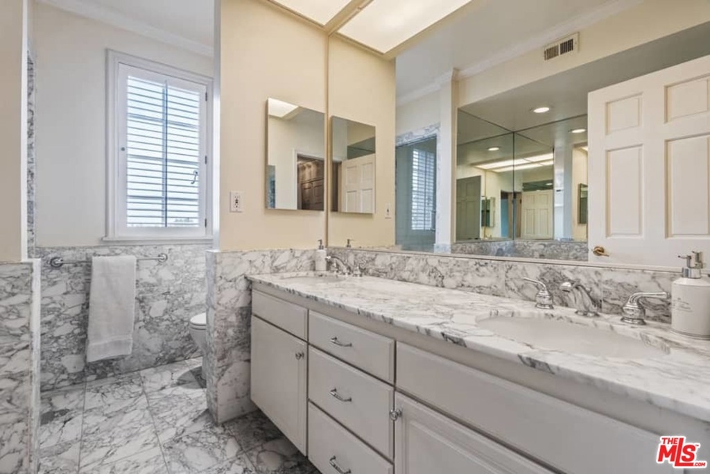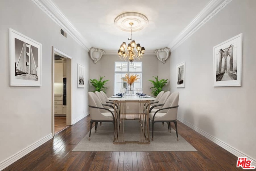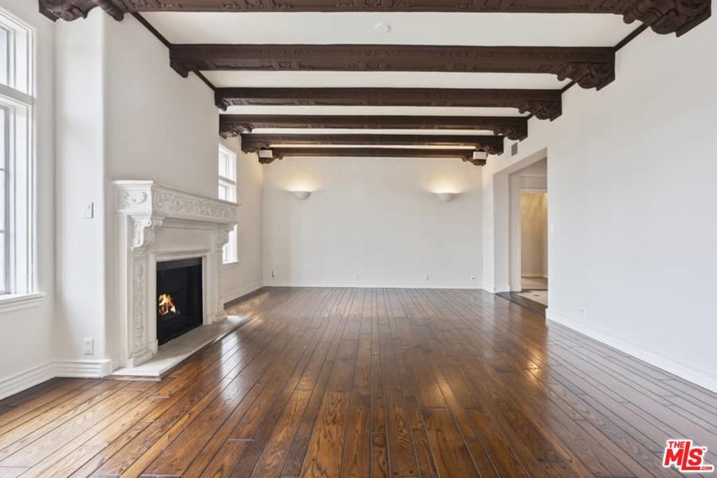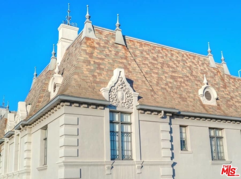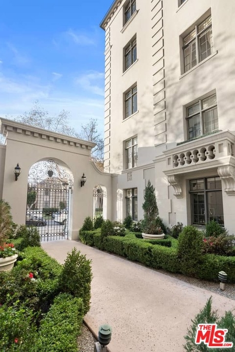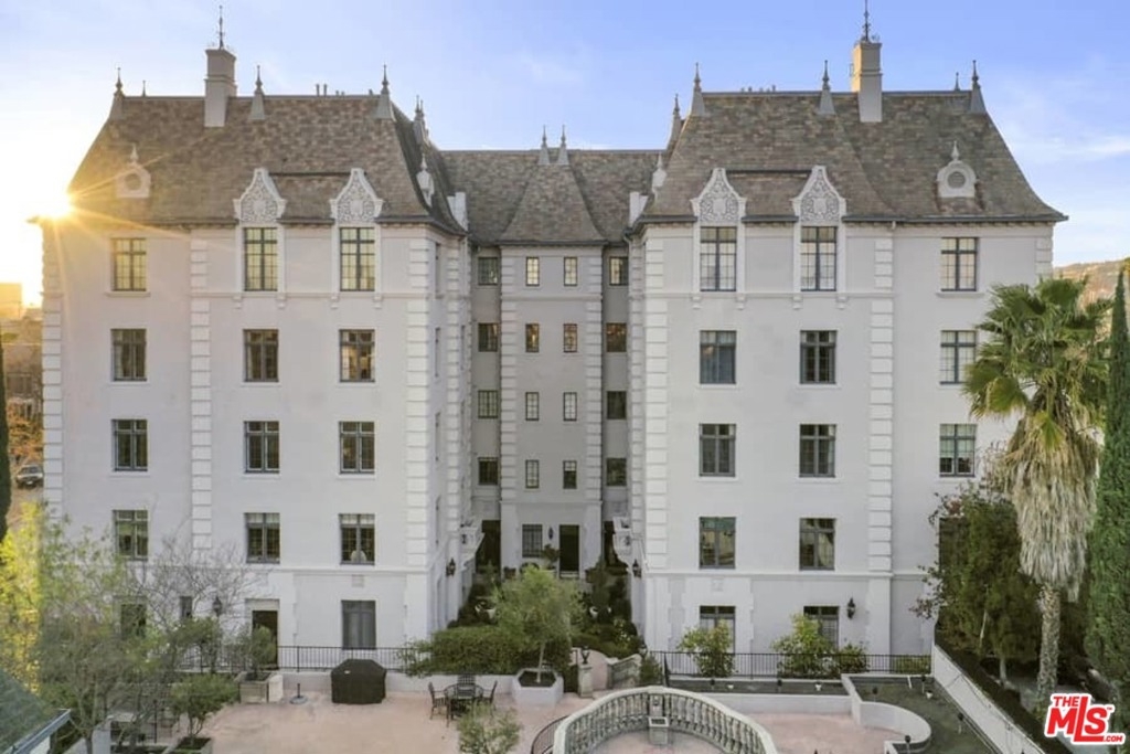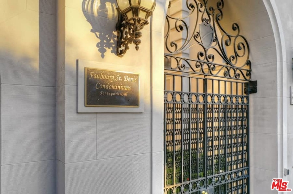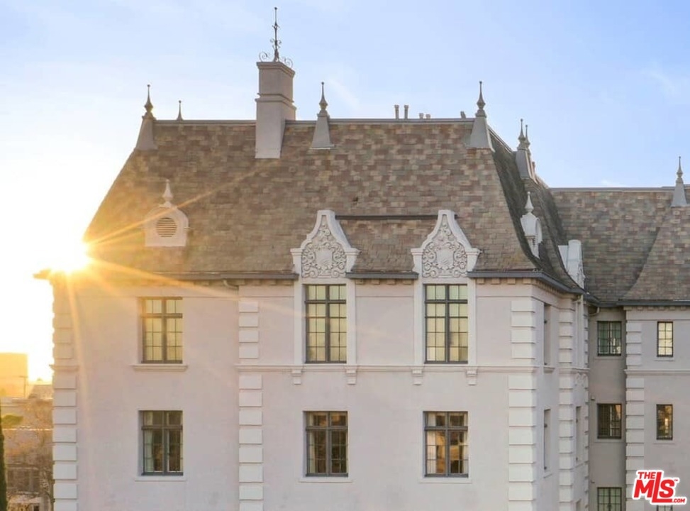 Rare 4th floor South East corner apartment in the legendary 1920s Faubourg St. Denis Bldg. Incredible details include 28ft entry hall gallery with carved beamed ceilings, large formal dining room, large scale elegant living room with high ceilings, stone fireplace, steel frame windows overlooking the pool area and views toward downtown. Expansive art walls, recessed lights, beautiful period moldings, powder room, hardwood floors and chefs eat in kitchen. Large master suite with views, walk in closet and Carrera marble bath. 3 additional bedrooms can provide options for media room/office/den. One with separate entrance. Only 4 units per floor with no common walls. Building amenities include on site manager, double gated entry, gated garage, storage room, gym with sauna and gorgeous pool & spa area. One of a kind!
