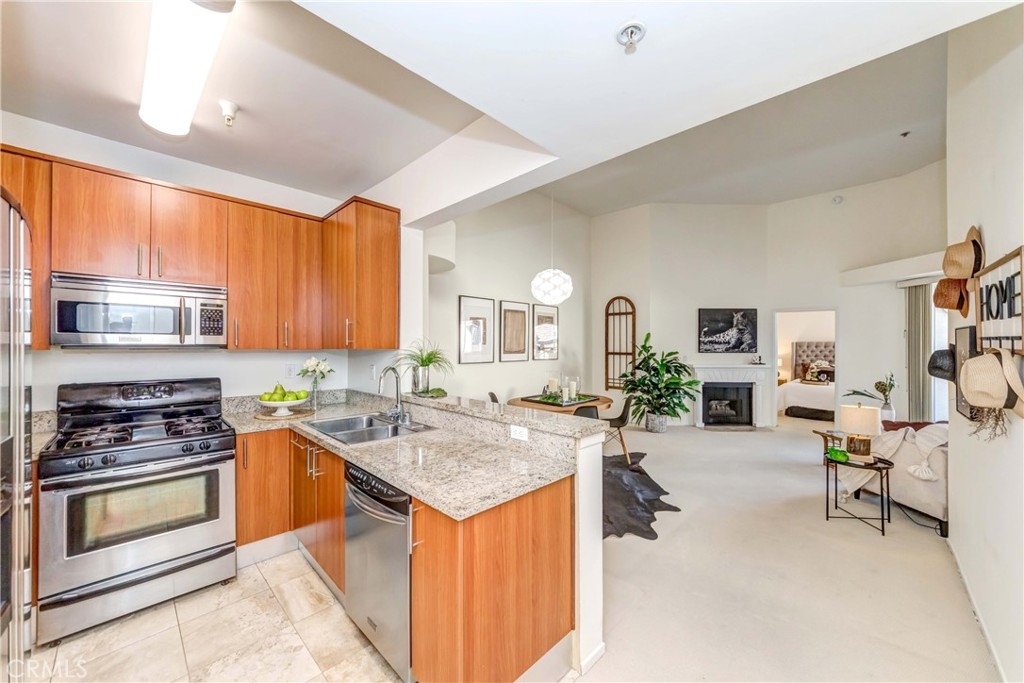 IT COULD BE FEATURED IN THE COVER OF 'HOME & GARDEN MAGAZINE'! Shows like a model home; absolutely picture perfect and in immaculate condition! Sophisticated urban living in Gramercy Place! Located on a superb quiet interior location. Exceptional 4th floor unit (nobody above) with two generous sized bedrooms and 2 full bathrooms. Upon entering you will find a perfectly flowing split floor plan with abundance of NATURAL SUNLIGHT. Fabulous open concept, bright, warm and comfortable living room with high ceilings, cozy fireplace and sliding door leading to balcony for perfect relaxing or morning coffee. Delightful master bedroom with walk-in closet & private full bathroom. The other bedroom with also has a walk-in closet and a full bathroom. Spacious and open kitchen with granite countertops, nice cabinets, stainless steel/black appliances, refrigerator and casual dining area. Luxurious amenities include private rooftop pool & spa with lounge area, full gym and fitness center, sauna, community laundry, two secured assigned tandem parking spaces (#128 & #129) with security, on-site maintenance/storage/management, elegant lobby with business center, walkability, endless attractions and three blocks to Purple Metro line station. Incredible opportunity to own in the heart of LA! Gramercy Place is located in a beautiful area where Hancock Park borders Koreatown near shopping centers, movie theatre, and restaurants. Just a short drive to LACMA, The Grove, DTLA and Hollywood; this home is in the center of it all. The exciting rooftop pool deck has a 360 degree view of LA and much more.