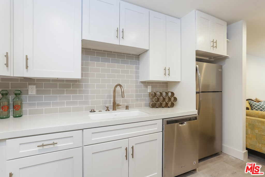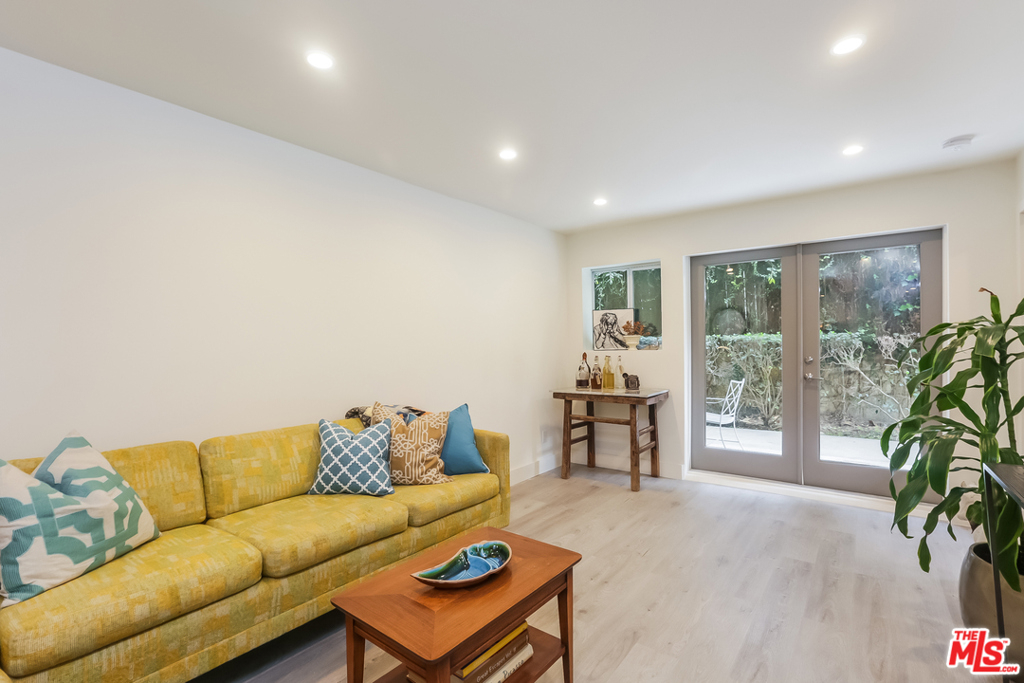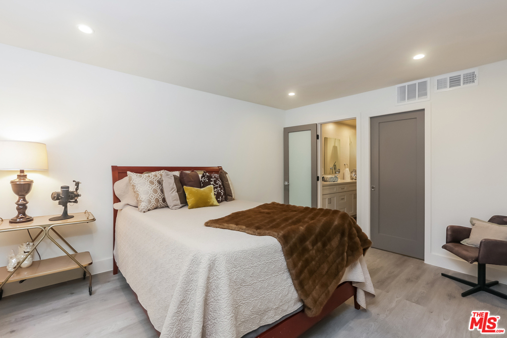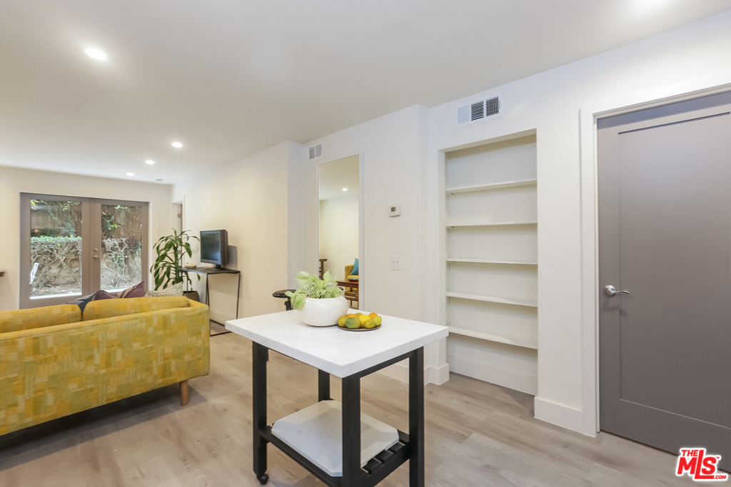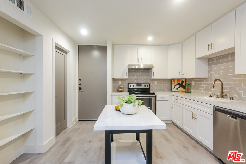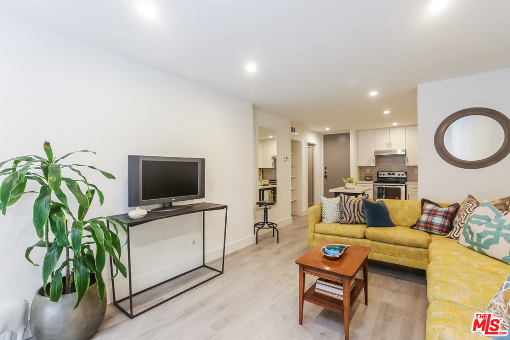 Celebrity's LA condo (home-away-from-home during filming) now avail for savvy buyer looking for a move-in ready condo. This beautifully renovated, turn-key 1 BD & 2 BA condo offers a fantastic OPEN kitchen (only unit in bldg ) with newer flooring, tiles, cabinetry, stainless appliances, counters, and main room powder bathroom, copper plumbing, recessed lighting, a walk-in closet (plumbed for in-unit laundry in master closet), and fantastic natural lighting. This ground-level, rear-of-building quiet unit opens with French doors directly to a large patio space -- perfect for pet lovers. Massive master bath w/two sinks and a spacious walk-in shower. Minutes away from Larchmont Village, Melrose Ave shops/restaurants, the Wilshire CC, Hollywood, close to Studios, and sits in an award-winning school dist. The community offers subterranean parking, controlled access and cameras, elevator, storage, community laundry, pool and sauna, and earthquake insur -- all included in its low HOA dues!
