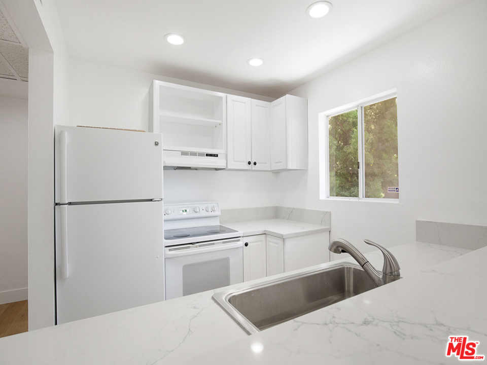 One of the LARGEST and quietest units in the complex. Newly remodeled modern and sophisticated condo nestled in the heart of Hancock Park. Pack your bags and settle into your new home in this marvelous rear corner unit. Enjoy the added privacy of a formal entry, with a full guest bathroom off the main entry way. The open concept living space with newer sliding doors to a beautiful balcony is perfect for hosting get togethers or sharing an intimate moment on those long summer evenings or coffee in the morning. The kitchen cabinets are freshly painted white, stylish new quartz countertop and sink with a bar area perfect for entertaining guests. This unit has incredible storage with a walk in pantry. The oversized primary bedroom is bright and airy with a huge picture window, TWO walk in closets and an ensuite with IN unit Laundry, shower with a built in seat and linen closet. Remodel includes new white paint throughout, smooth ceilings, recessed lighting, updated vanities & brand new vinyl oak-style floors throughout. Association pool and sauna, subterranean parking with 2 car tandem parking. Unbeatable prime location in iconic Hancock Park close to Larchmont Village, Los Angeles Tennis Club, delicious eateries and live entertainment, Wilshire Country Club, Paramount Studios, Downtown Los Angeles, Beverly Hills, West Hollywood. Unbeatable location and price for this property! Prior to the current seller this unit was converted from a 2/2 to a 1/2.