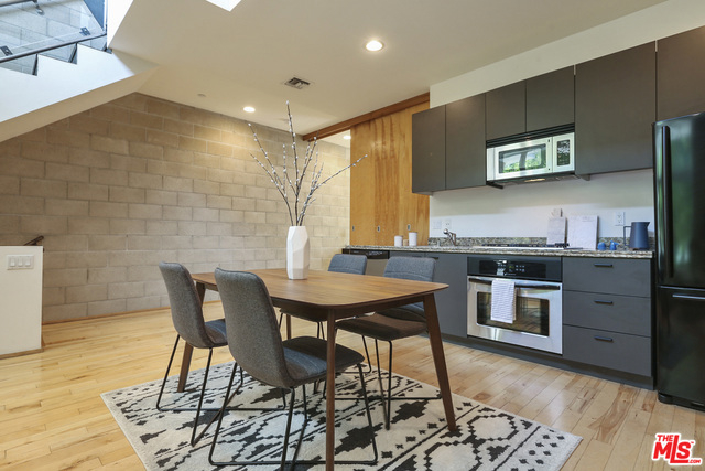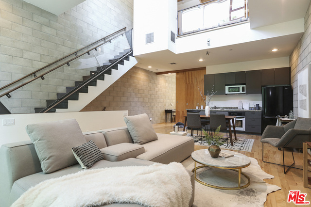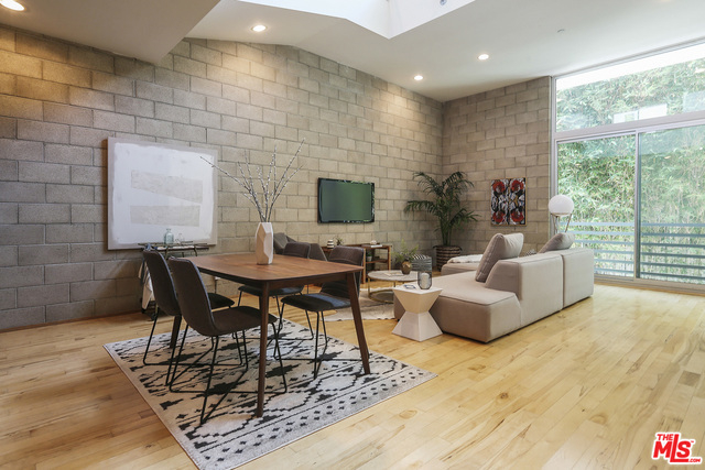 Perched in the perfect location on the corner of Melrose and Highland, this beautiful modern loft is in the heart of everything, yet secluded and quiet! Zoned as live/work, the tax benefits are spectacular, and with low HOAs, holding this long term offers a great investment as well! Entering on the ground level, you can access the attached two car garage. Walking up, you are greeted with soaring ceilings and windows looking out to a mature 30' high bamboo forest. The main level has the living, dining and kitchen space, along with the 2nd bedroom. The top floor features the master suite which walks out to a well-proportioned porch, offering peek-a-boo views of the hills and Hollywood lights at night. Bonuses include solid hardwood floors, concrete-block construction and drive-in private garage. Welcome home!