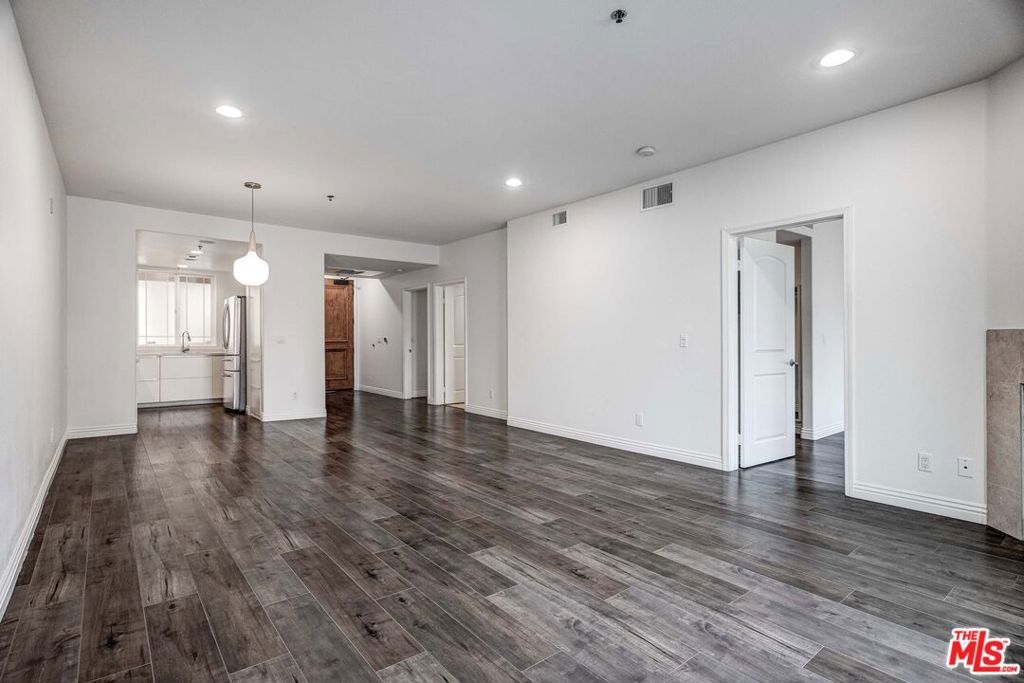 Beautiful and spacious 2 bedroom, 2 full bathroom condo in the Koreatown/Hancock Park area. Open space from the dining area to the living area leads to a north facing patio with a great street view. Laminated flooring throughout the living spaces, kitchen and the bedrooms. The main bedroom has ample closet space and access to the patio. Kitchen has beautiful custom built modern European style cabinetry. Central Air Conditioning and 2 parking spaces.