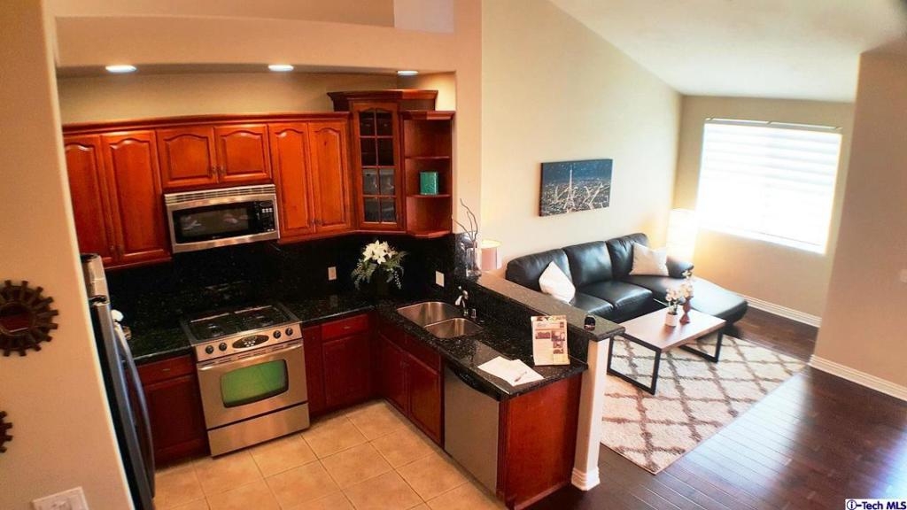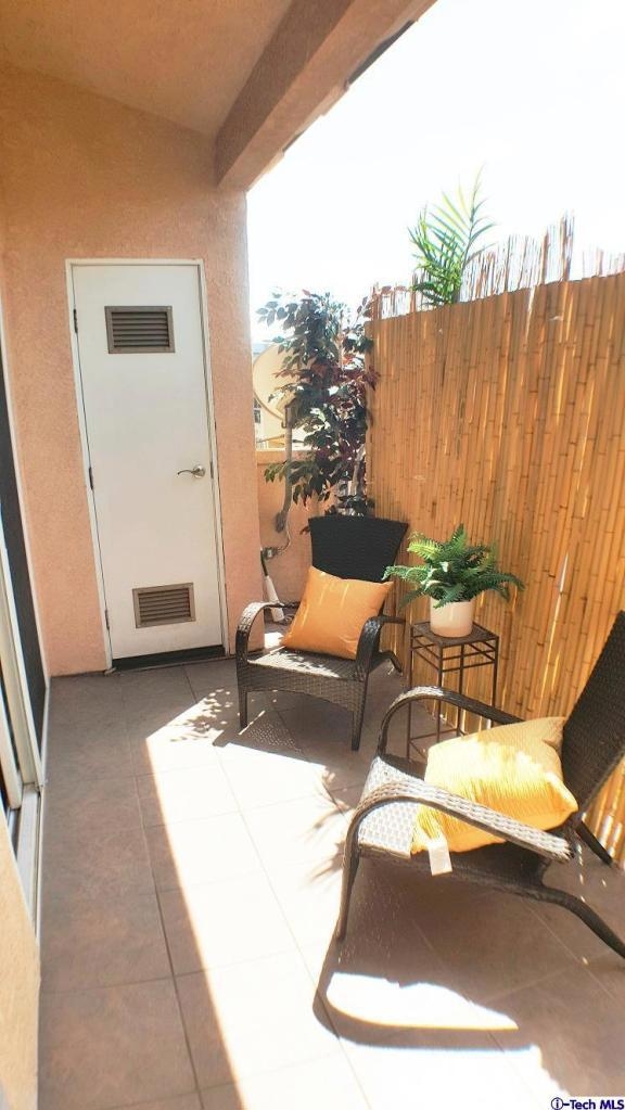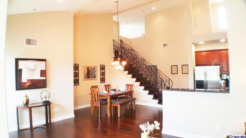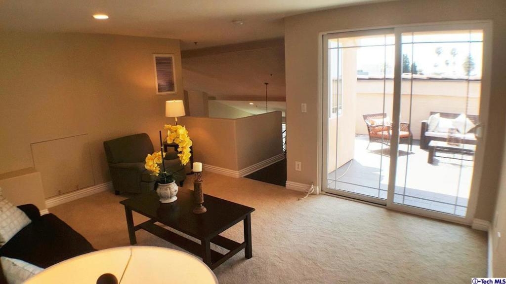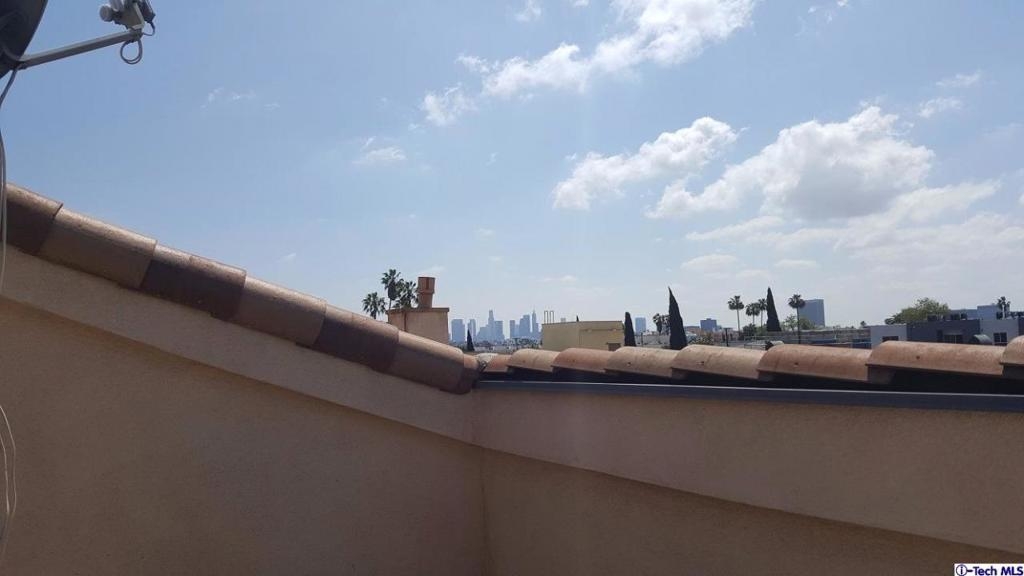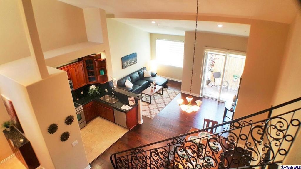 Price reduced for fast sale! Beautiful and luxurious, top-floor penthouse unit in Koreatown. High ceilings in the kitchen and adjoining dining and living areas.Staircase with intricate iron hand railing leads to den and private patio, perfect for BBQing. Large main suite with vaulted ceilings. Suite bath has separate, travertine tile bath tub and shower, and dual sinks with granite countertop. Two additional bedrooms and a full bath, laundry area. Kitchen has wood cabinets, granite countertops, stainless steel appliances, and recessed lighting.