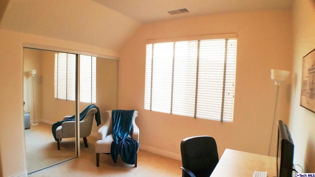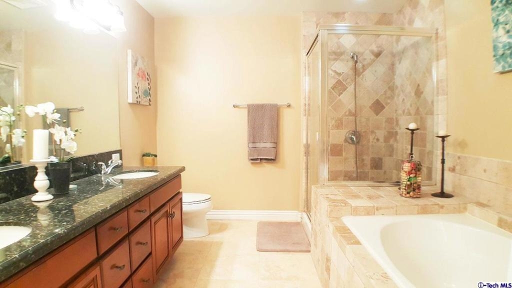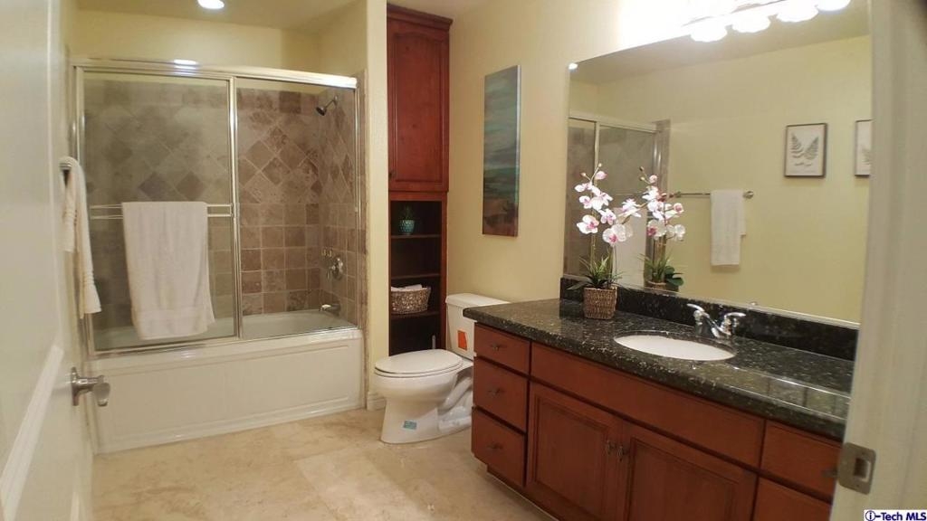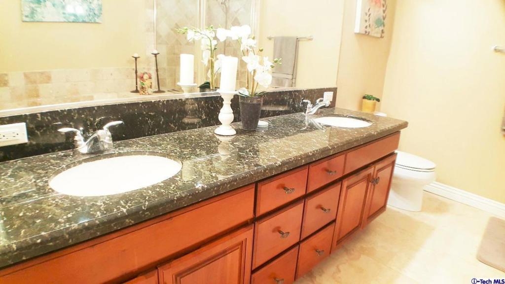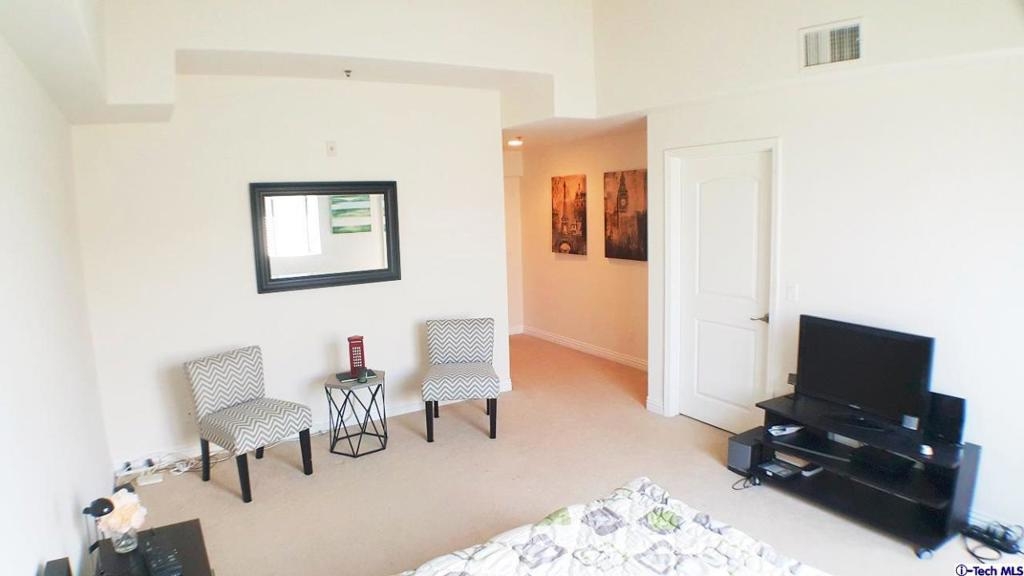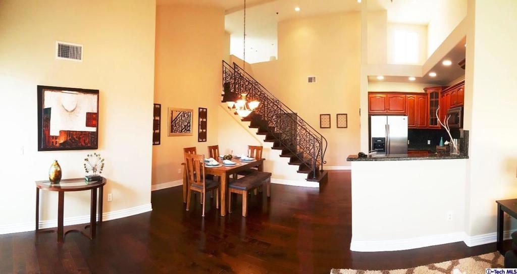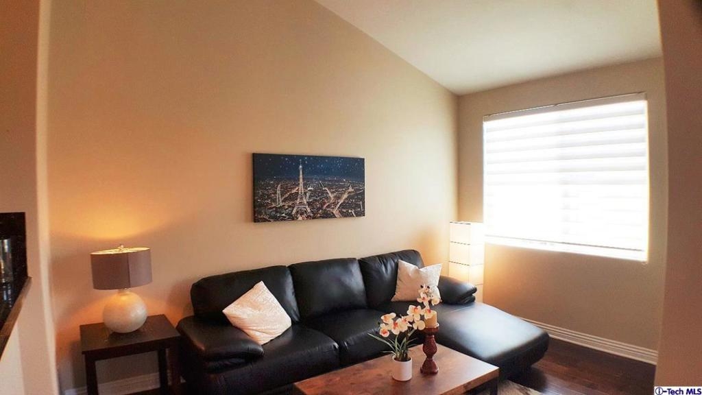 Price reduced for fast sale! Beautiful and luxurious, top-floor penthouse unit in Koreatown. High ceilings in the kitchen and adjoining dining and living areas.Staircase with intricate iron hand railing leads to den and private patio, perfect for BBQing. Large main suite with vaulted ceilings. Suite bath has separate, travertine tile bath tub and shower, and dual sinks with granite countertop. Two additional bedrooms and a full bath, laundry area. Kitchen has wood cabinets, granite countertops, stainless steel appliances, and recessed lighting.