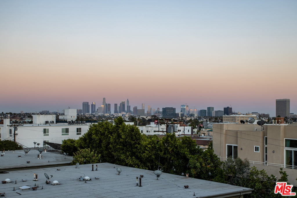 Located in the heart of L.A. adjacent to Hancock Park & Larchmont Village, this amazing updated front-facing top floor corner unit w/a private roof deck & expansive balcony, has everything you've been looking for. Airy & bright. The living room features a dramatic high ceiling, fireplace, balcony & a wet bar for entertaining guests. Newly updated kitchen with quartz countertops, tile flooring, & stainless-steel appliances. The master bed features high ceilings, a huge walk-in closet, work space, and ensuite bath featuring double vanity sink w/marble countertop, matte black and brass finishes, wainscoting, spacious shower w/custom frameless shower door and a bathtub. 2nd bedroom features a huge walk-in closet and comes with mountain & DTLA views. The 2nd bath is also recently renovated with tile floors, wainscoting and modern bath features. Take the private stairs to your personal roof deck to dine al fresco with amazing views of DTLA & the Hollywood sign. Central HVAC, Laundry room w/side by side washer/dryer & plenty of storage. Gated parking with electric car charger & guest parking. This wonderful and centrally located condo is move-in ready! You'll enjoy taking walks around the neighborhood & visiting the farmers market at Larchmont Village. Close to Osteria La Buca, Paramount Studios & Netflix