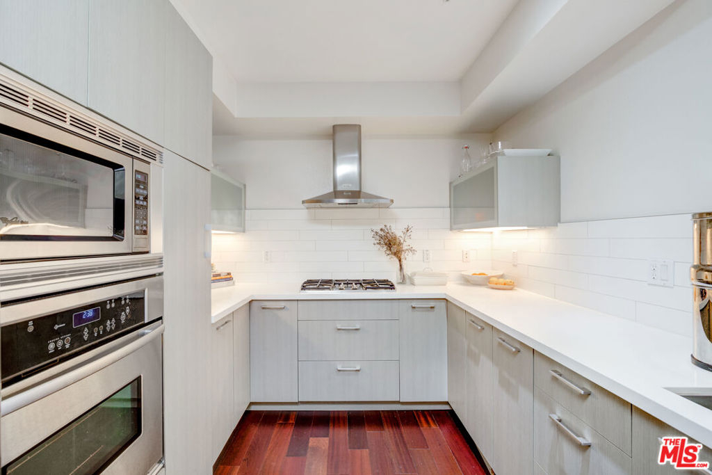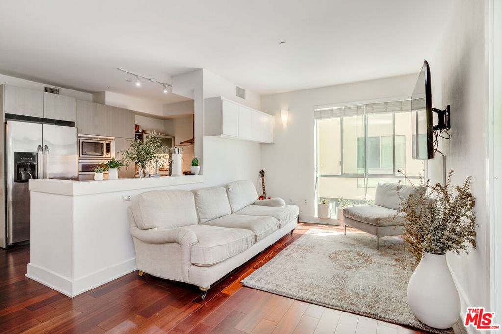 Welcome home to luxury living in popular Miracle Mile! Inviting and a fully secured building from the entrance to your front door. Natural light pours in from tall floor-to-ceiling windows into the large open-concept rooms. With no shared walls, this unique condo gives exceptional privacy. Facing matured trees, the unit provides a serene balcony, hardwood floors throughout, an in-unit washer/dryer, and HVAC. The master suite offers a large closet, vanity nook, and an attached bathroom w/ a deep roman tub. There is a Bonus Room that can be used as a bedroom/office/den on the opposite side of the unit offering great additional creative space and can be removed by the buyer if needed. The sleek kitchen features white countertops, stainless steel stove, dishwasher, refrigerator, and is the perfect space for cooking & entertaining. This unit offers two assigned parking spots + guest parking making arriving home a breeze. The spacious gym is equipped w/ machines and weights. The building also offers a secured mail area for delivered packages. Just a short walking distance to famous restaurants, parks, and popular museums/attractions such as The LaBrea Tar Pits, LACMA, The Grove & the historic Fairfax Farmer's Market! Come see this beautiful unit and fall in love!