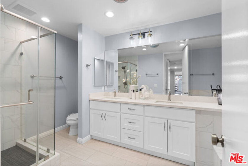 Experience luxury living in this beautifully remodeled 3 bed, 3 bath top-floor southeast-facing corner unit in a prestigious Hancock Park complex. Thanks to its unique position, only one shared walls with neighboring units, offering exceptional privacy and abundant natural light throughout. With nearly 1,800 sq ft of thoughtfully designed space, the open-concept layout features recessed lighting, hardwood flooring, and floor-to-ceiling windows that flood the home with light. The living room boasts a cozy decorative fireplace and an atrium-style glass-enclosed balcony ideal for morning coffee or evening relaxation.The remodeled kitchen is a chef's dream, featuring quartz countertops, a spacious island that opens to the living area, and premium Bosch appliances. Additional custom cabinetry lines the kitchen and dining area, offering ample storage and superb functionality. Every window is fitted with classic wood plantation shutters, and the entire interior has been freshly painted for a modern, inviting atmosphere. The primary suite is generously sized with a walk- in closet and spa-inspired bath with double vanities, a soaking tub, and a separate shower. Two additional bedrooms also enjoy great closet space and easy access to full baths. Extras include in-unit laundry, two side-by-side parking spaces, and a large private storage unit. Community amenities include security, a heated pool, spa, sauna, clubhouse, and fitness center. Located within the desirable Third Street Elementary School District, this home is close to the best of Hancock Park dining, shopping, and more. This is a rare opportunity to own a top-floor, sun-drenched, corner unit with unmatched privacy in one of LA's most sought-after neighborhoods.