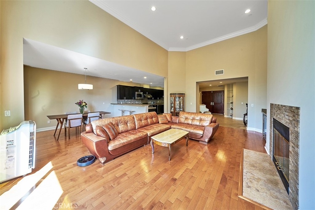 Beautiful in all its quality details and ready to move in! This is the best location in the building with so much natural lighting and a private balcony. The community is gorgeous, well-maintained and very private with controlled access and great security. A lot of luxurious architectural features throughout private and common spaces. This property feels like a single-family home with a large, open floor plan and vaulted ceilings. High-end hardwood and ceramic tile floors throughout. Three spacious bedrooms with three and a half baths. Gourmet kitchen features custom cabinets, professional-grade appliances and premium stone countertops, not to mention a breakfast area, wet bar and wine cellar. Laundry room accommodates washer and dryer side by side. This unit has two assigned parking spaces which are adjacent to each other. There is also an outdoor area which is perfect for children and pets. Community amenities include fitness center and conference room. Don't miss the opportunity to make this your new home.