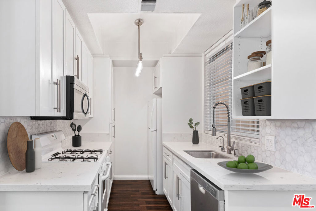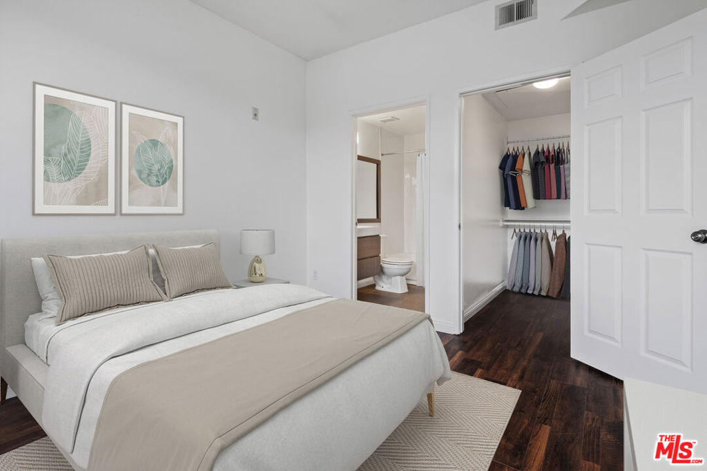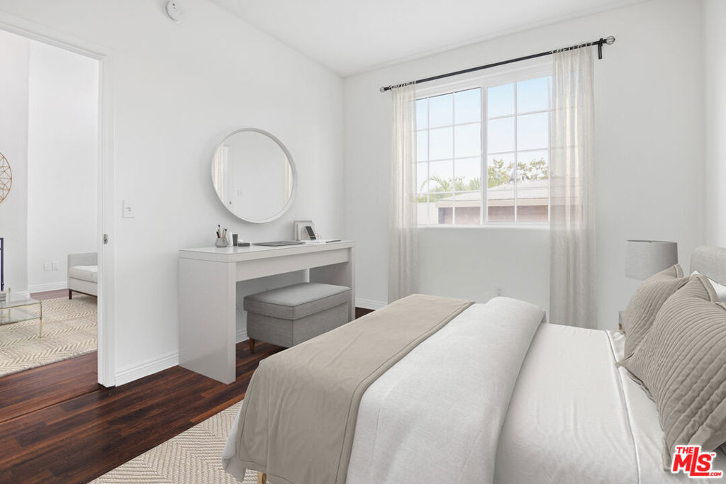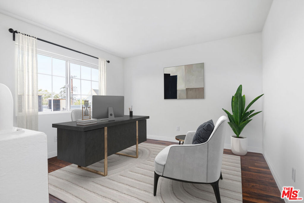 Welcome to 5051 Rosewood, located in the charming neighborhood of Larchmont. Bathed in natural light, this freshly painted top floor 2 bed + 2 bath + loft unit features a spacious living space with high ceilings, a cozy fireplace, and elegant wood floors throughout. The kitchen impresses with quartz countertops and sleek cabinetry. Both bedrooms offer ensuite baths and generous walk-in closets. A spacious loft provides flexibility for a home office or guest room. Enjoy gated community amenities including 2-car parking, guest parking, a gym, and building laundry. Positioned near Larchmont Village's shops and eateries, Hancock Park, and Paramount Studios, this home blends convenience and style seamlessly. Make it yours today!