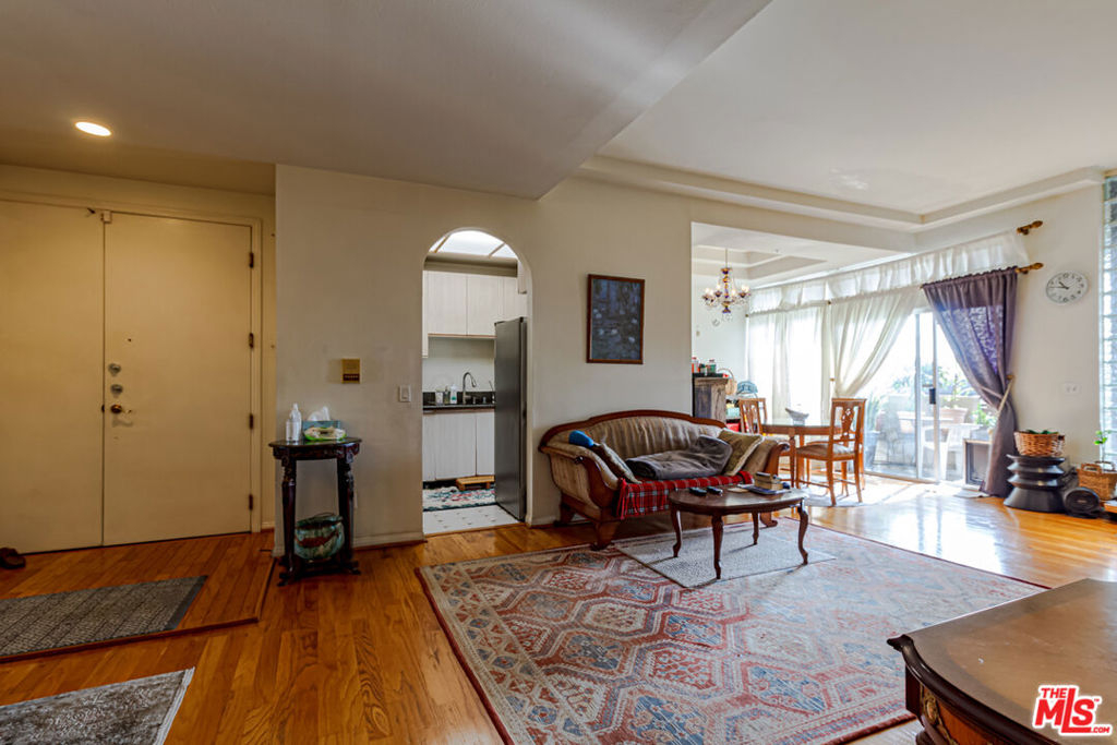Beautiful condo unit available at the Rosewood Regency. Located between Hancock Park and Koreatown, this south facing unit features a large and private balcony with stunning city views of Los Angeles. Step into the unit into the spacious living room with high ceilings, fireplace, and a wet bar for entertaining pleasure. Laminated floors throughout with tile in kitchen and in bathrooms. Master suite has a walk in closet and a roomy bathroom with dual sink vanity and separate shower and bathtub. Side by side laundry room in the unit. 2 tandem parking spaces inside gated community garage. All chandeliers inside the unit are excluded from the sale. Walking distance to Raleigh Studios and Paramount Pictures Studios and close driving distance to many LA neighborhoods such as Larchmont, Hollywood, Los Feliz, Koreatown, Hancock Park, Miracle Mile and many more.