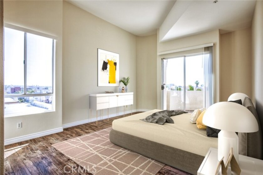 Fabulous 2 Bed 2 Bath Condo with Huge Balcony located in convenient & silent area. Step outside onto the huge balcony, where you'll be greeted with stunning city views of Los Angeles. Top floor, high ceiling & southeast corner unit. This lovely corner unit offers an open living and dining area with fireplace, gourmet kitchen with stainless-steel appliances, granite countertops. Very bright !! Upgraded wood flooring throughout. Upgraded Kitchen & Bathrooms, Separated Tub & Shower in master bath. The spacious master suite features a walk-in closet. Great location!! Close to downtown Los Angeles, Larchmont Village & Beverly Hills. With its combination of comfort, convenience, and spectacular views, this condo offers the ultimate urban living experience. Don't miss out on the opportunity to make this your new home sweet home!
