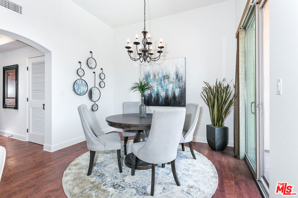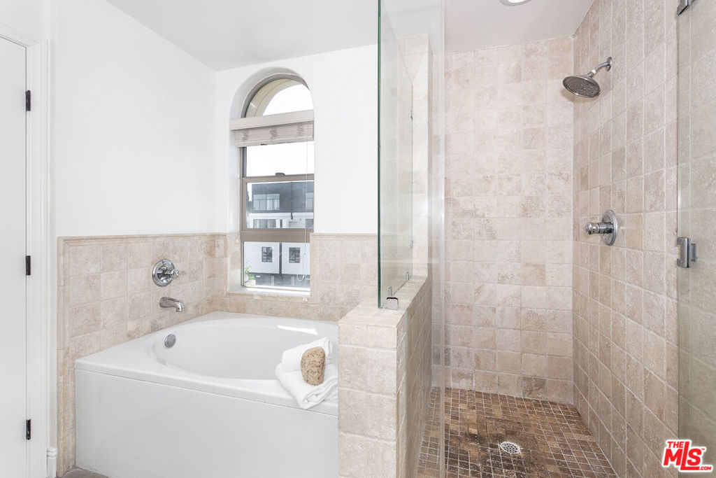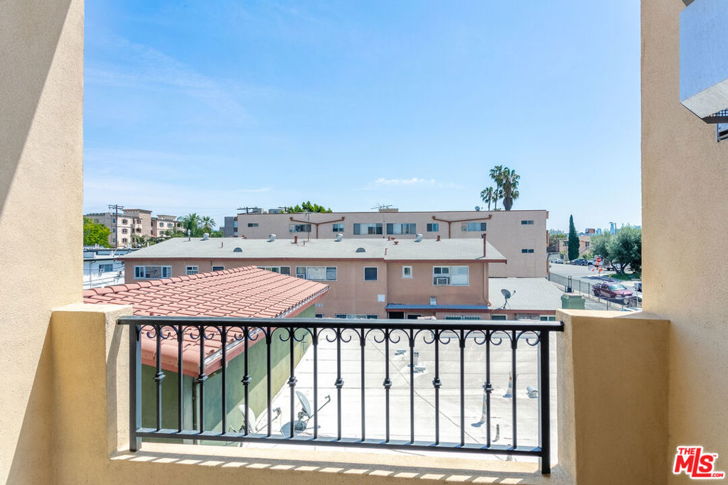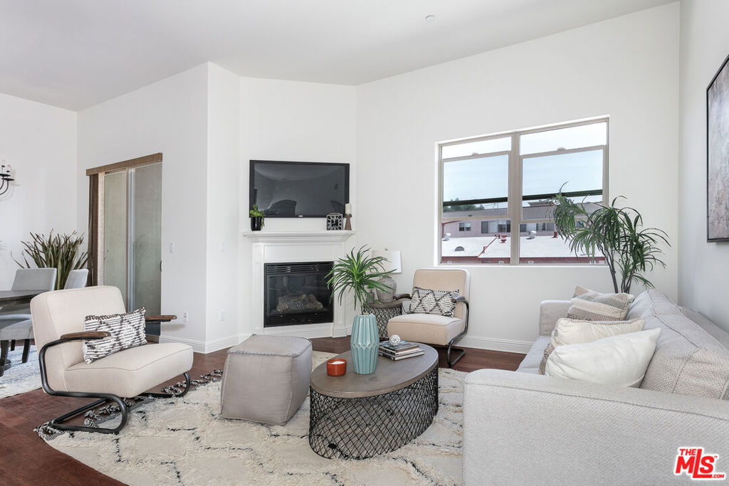Rarely available penthouse in newer construction Rosewood Villas. This beautiful, top level, move in ready, street facing condo is located in the heart of Hancock Park one block away from Van Ness Elementary School and down the street from Paramount Studios. Upon entering you are welcomed into a large living and dining space with high ceilings, a fire place, and lots of natural light coming in from the east facing windows and glass doors to the balcony. The open floor plan connects the kitchen and living area with a bar that's perfect for entertaining. Both rooms are spacious with lots of closet space. Master suite is complete with high ceilings, his and her bathroom sinks and mirrors, as well as a shower with frameless glass doors and an adjacent tub. Two tandem parking spaces in a secure garage.
