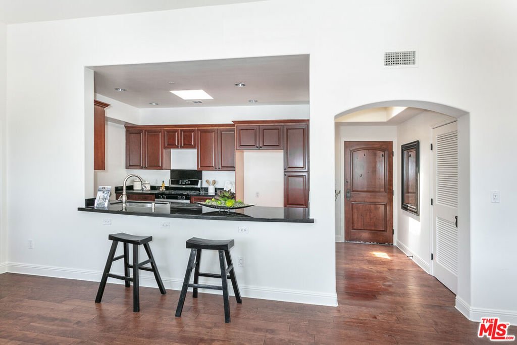 Rarely available penthouse in newer construction Rosewood Villas. This beautiful, top level, move in ready, street facing condo is located in the heart of Hancock Park one block away from Van Ness Elementary School and down the street from Paramount Studios. Upon entering you are welcomed into a large living and dining space with high ceilings, a fire place, and lots of natural light coming in from the east facing windows and glass doors to the balcony. The open floor plan connects the kitchen and living area with a bar that's perfect for entertaining. Both rooms are spacious with lots of closet space. Master suite is complete with high ceilings, his and her bathroom sinks and mirrors, as well as a shower with frameless glass doors and an adjacent tub. Two tandem parking spaces in a secure garage.