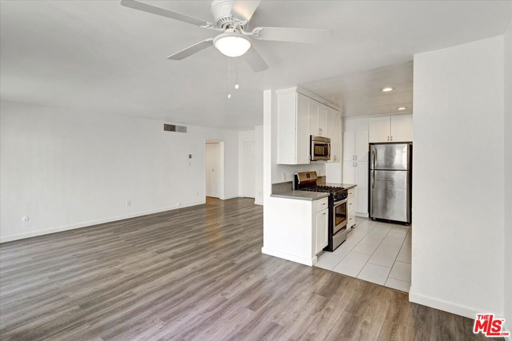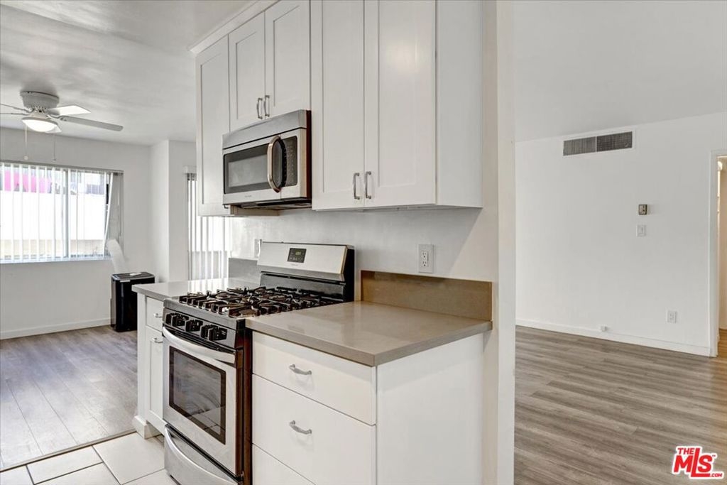 1 Bedroom, 1 bathroom spacious and completely remodeled unit with smooth plastered ceiling. New Kitchen cabinets, quartz counters, and new appliances. Includes refrigerator, dishwasher, gas range and microwave hood. Lots of closet space throughout the unit. Laminate flooring throughout the entire unit. 1 parking space with storage locker. HOA covers gas and water. Amenities include community pool and sauna with on-site laundry.