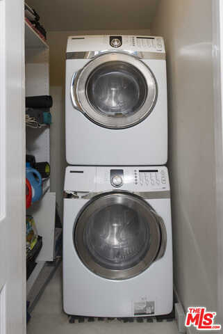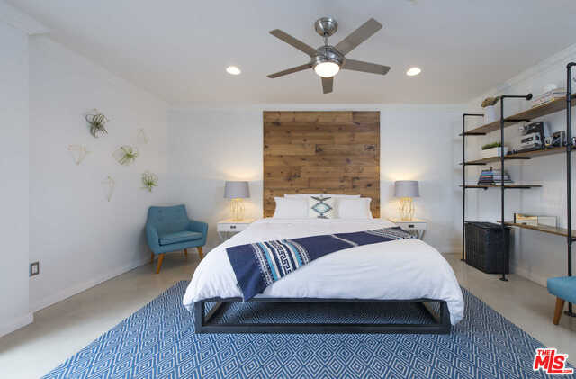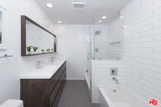 Located only a few blocks from Larchmont Village, this spacious top-floor California chic two-bedroom, two-bathroom home is smartly configured and well equipped. A formal entry, framed by walls designed to display art, leads to a large living room, which is bookended by two generously sized master suites. A formal dining area connects the living room to a well-proportioned kitchen with ample storage and counter space. The home lives larger, courtesy of two long patios, with views of the Hollywood Sign and palm-lined streets as their backdrop. The residence benefits from having a south-western exposure, bathing it in light all day. Both bathrooms have been nicely updated. Other amenities include: polished concrete floors, five sets of patio doors leading outside, newer copper plumbing, laundry in-unit, secured two-car parking, additional storage locker, and a community pool.