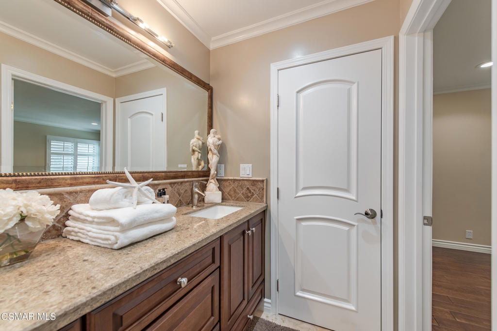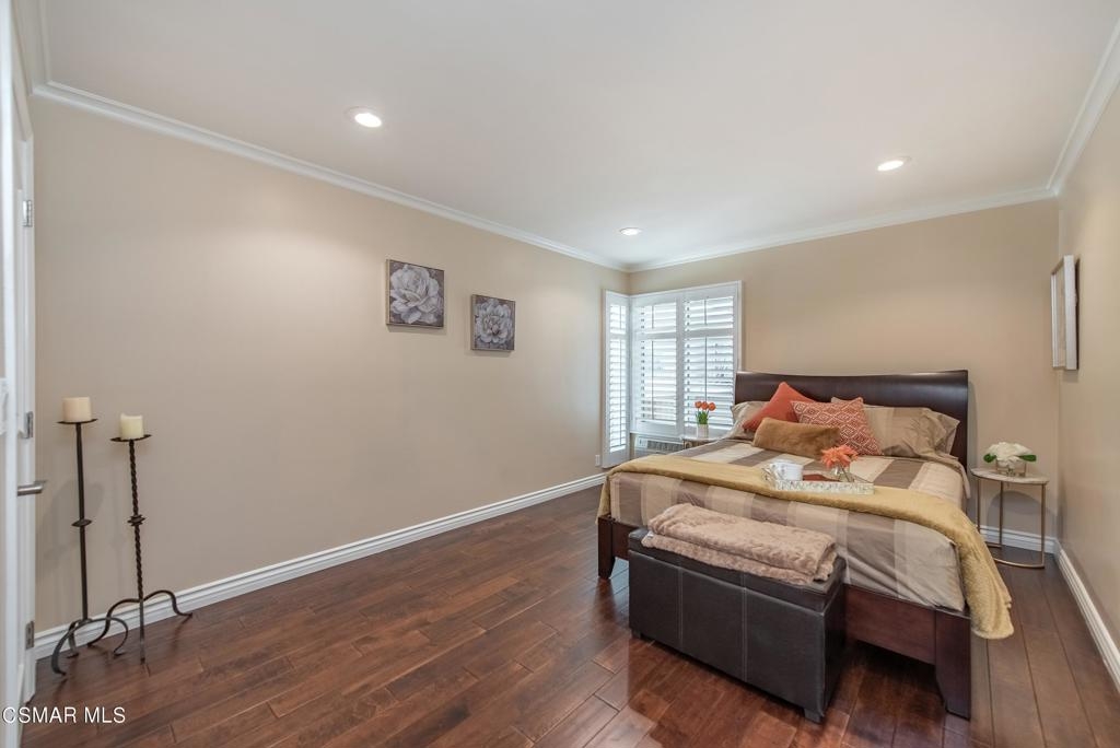 Centrally located this Hancock Park Penthouse Condo is beautifully upgraded with the best of the best, and will not disappoint. No expense was spared during the remodel; the home boasts custom cabinetry in the kitchen with pull out shelves, neutral Cambria quartz countertops, and glass tile backsplash, a breakfast bar, an imported oversized kitchen sink from Australia, newer stainless appliances, including an induction stove top and oven, for the chef in you, plus a private balcony for morning coffee, you won't want to leave home. Other features include dark hardwood flooring, crown molding, recess lighting, plantation shutters, built in surround sound recess ceiling speakers, smooth Roman doors, upgraded dual plumbing fixtures with a rain shower system and hand held shower, custom cabinetry and travertine tile in the bathroom, with dual vanities and walk-in customized closets. Stay warm and comfortable during the cold winter months with the radiant ceiling heating system. The community is gated and secured with underground 2 car tandem parking by remote access. The home is in close proximity to the world-famous Melrose shopping district, entertainment and restaurants, plus the Farmers Market, the Grove and the Hollywood Bowl. Relax you've made it home.
