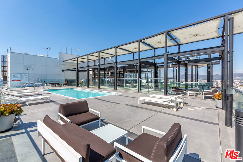 Stylish, open flow live/work well maintained (North facing) one bedroom, one bathroom unit. Bright and spacious with stainless steel dishwasher, stove, refrigerator, microwave oven, in-unit washer/dryer, large walk-in closet, high ceilings, hardwood floors, granite countertops, and balcony with expansive views of the Hollywood Hills. Be an owner in a fabulous high-rise, and live the lifestyle of the iconic Mercury building, a Claud Beelman mid-century modern architectural landmark. The Mercury features a 23-story tower building with two floors of retail stores, private lobby with controlled access, 24 hour security guard, Sky Deck, infinity rooftop pool, spa, gym, outdoor bbq area, and pets allowed. Close proximity to the Metro Purple & Red Line, Wilton theater, shops, restaurants, and cafes and a walk score of 97. Live, work, create, relax, entertain, exercise, swim and enjoy this impeccable home! Read private remarks.