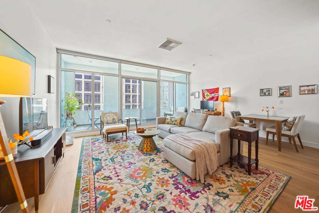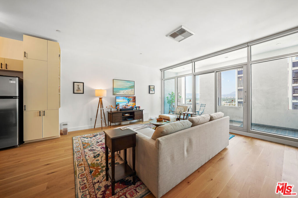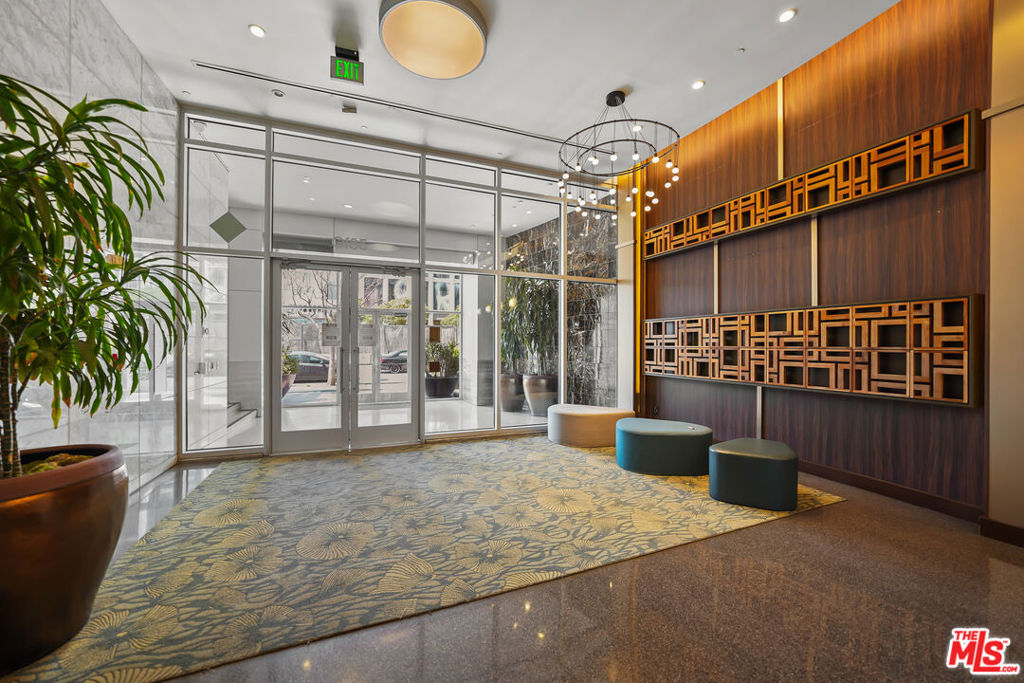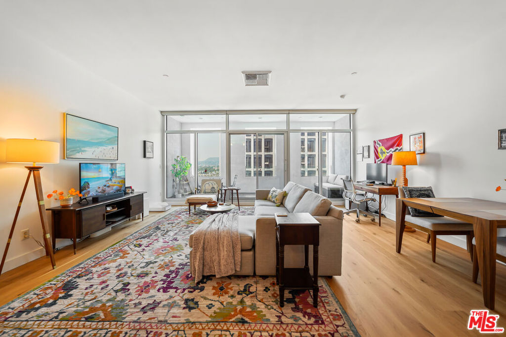 Luxury high rise condominium conveniently located in the heart of LA. This Koreatown condo has the largest floor plan for a one bedroom in The Mercury and has recently been updated with new Kahrs brand hardwood oak floors, Bosch dishwasher, Kohler kitchen faucet, Kohler toilet, Miele washer and dryer, custom Smith & Noble electric shades, kitchen light fixtures, refinished kitchen cabinets and hardware, and new paint throughout the unit. This well-maintained unit is filled with natural light, includes a walk-in closet, has a spacious balcony with picturesque views of the Hollywood Hills, Hancock Park, and Koreatown, and comes with one parking spot in the building's secure and private garage. The Mercury rooftop provides a peaceful retreat from city life and includes a state-of-the-art gym, pool, hot tub, grass lawn, BBQ area, and ample lounge areas for taking in the nearly 360 degree views of the city. The building is staffed 24/7 with attentive front desk concierge/security personnel to sign for your packages, send food/grocery delivery drivers up to your unit, and grant your guests access to guest parking. The building is also secured, requiring a key fob upon entry into the building and elevators. Within walking distance, there are ample grocery stores, shops, cafes, restaurants, doctor and dental offices, salons, transit options, etc. Larchmont Village, Hancock Park, and Melrose Hill are also nearby. This conveniently located unit makes all parts of LA easily accessible.