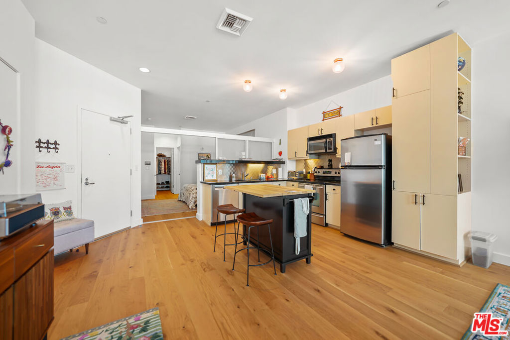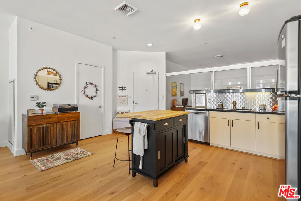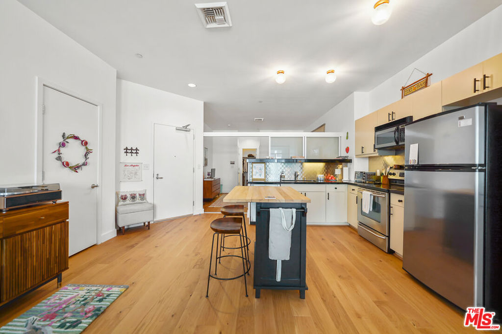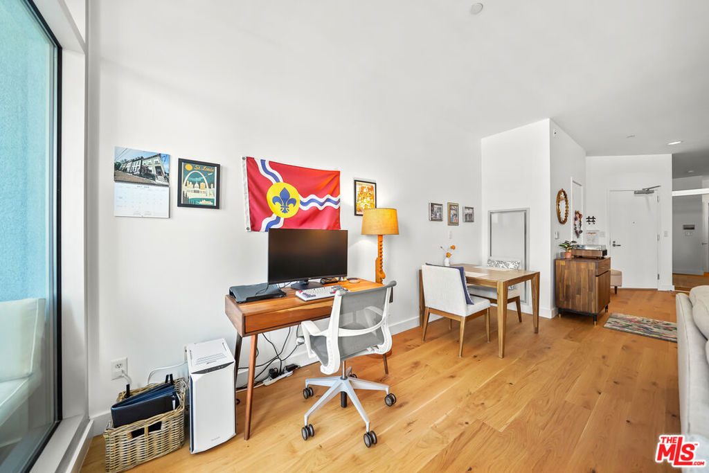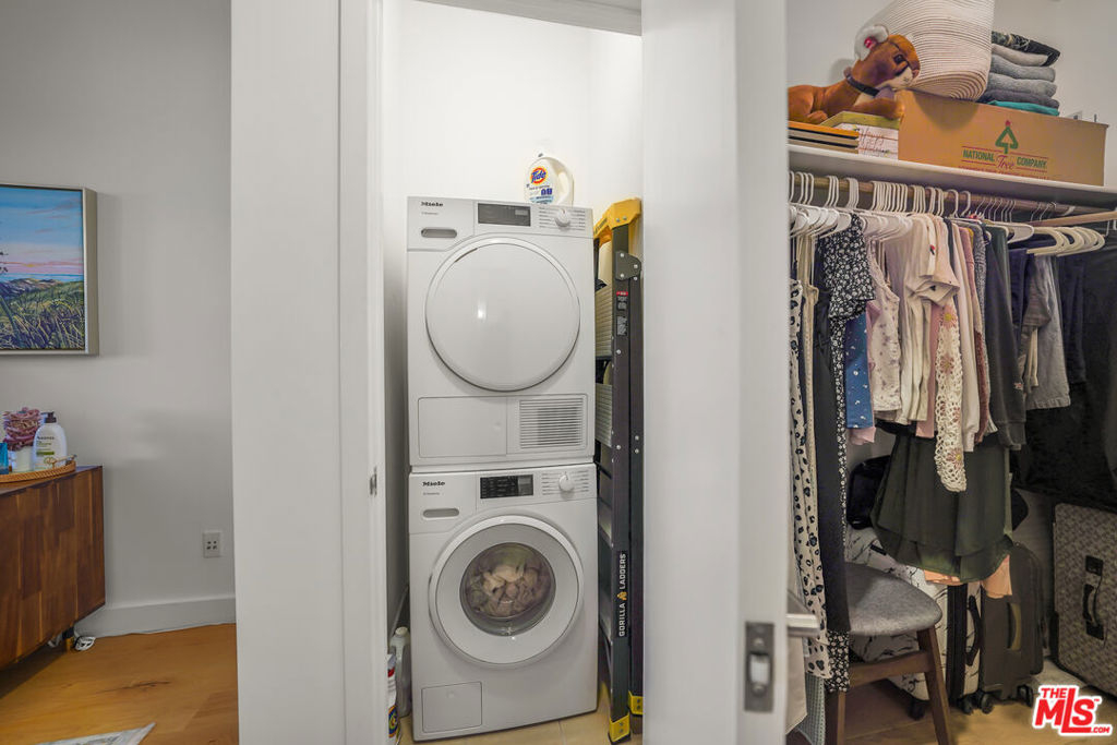 Luxury high rise condominium conveniently located in the heart of LA. This Koreatown condo has the largest floor plan for a one bedroom in The Mercury and has recently been updated with new Kahrs brand hardwood oak floors, Bosch dishwasher, Kohler kitchen faucet, Kohler toilet, Miele washer and dryer, custom Smith & Noble electric shades, kitchen light fixtures, refinished kitchen cabinets and hardware, and new paint throughout the unit. This well-maintained unit is filled with natural light, includes a walk-in closet, has a spacious balcony with picturesque views of the Hollywood Hills, Hancock Park, and Koreatown, and comes with one parking spot in the building's secure and private garage. The Mercury rooftop provides a peaceful retreat from city life and includes a state-of-the-art gym, pool, hot tub, grass lawn, BBQ area, and ample lounge areas for taking in the nearly 360 degree views of the city. The building is staffed 24/7 with attentive front desk concierge/security personnel to sign for your packages, send food/grocery delivery drivers up to your unit, and grant your guests access to guest parking. The building is also secured, requiring a key fob upon entry into the building and elevators. Within walking distance, there are ample grocery stores, shops, cafes, restaurants, doctor and dental offices, salons, transit options, etc. Larchmont Village, Hancock Park, and Melrose Hill are also nearby. This conveniently located unit makes all parts of LA easily accessible.