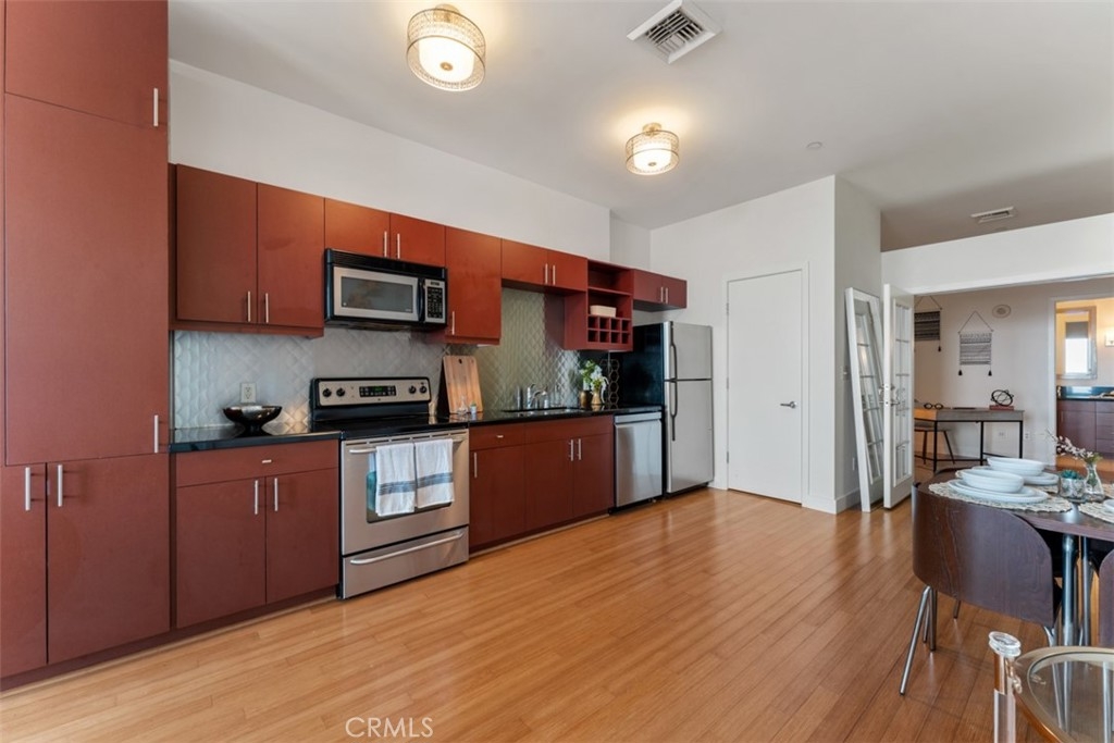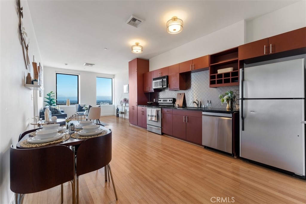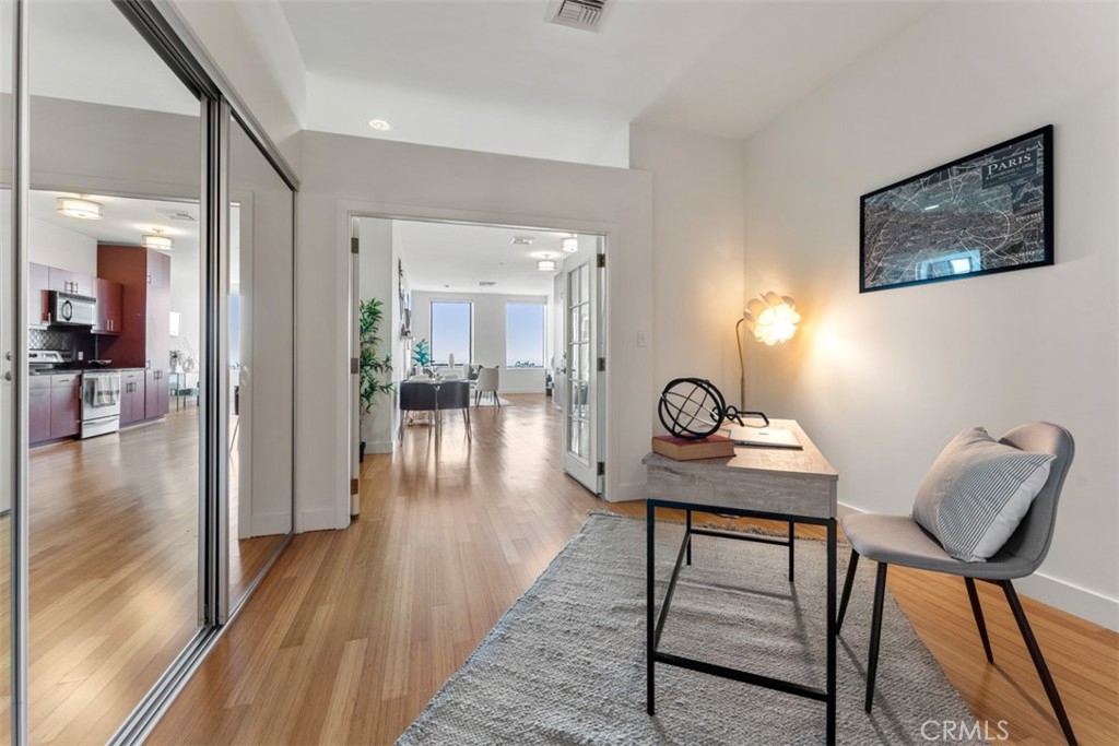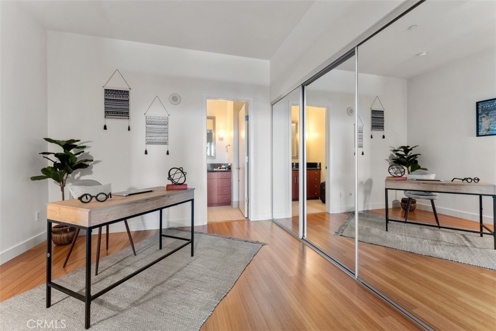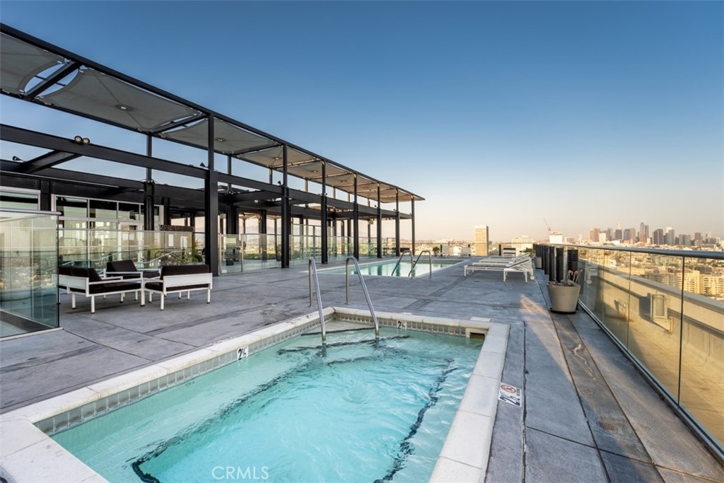 The luxurious Mercury Building, built in 1962 as a vision of J. Paul Getty and legendary architect Claud Beelman, was converted into condominiums in 2007. Conveniently located just south of the Hollywood Hills, 10 minutes from Downtown, and 10 minutes from Beverly Hills, all the amenities this world-class city has to offer are easily accessible. Make your way up to the Skydeck where the roof-top pool, jacuzzi, BBQ grills and picnic area are sure to impress and entertain any guests with 360 degree views of the city, and the Pacific Ocean on a clear day. The rooftop gym gives you a breathtaking view of the Hollywood Hills through its floor to ceiling windows,. The 2 bedroom unit boasts bamboo floors throughout, carpet in the bedroom, granite countertops, built-in stainless steel appliances, a washer and dryer, high ceilings, recessed lights, an open floor plan and large windows to ensure you're always taking advantage of the city views and receiving plenty of natural light. Within a city block is the famous Wiltern Theater, CGV Theater/Plaza, The Solair and the Metro Red Line station giving you easy access to Union Station or Universal Studios. The building has 2 reserved parking spaces and guest parking in the gated parking structure, 24 hour security, and a gorgeous 5 star guest lobby. Do not miss this unique opportunity to live in one of the most desired luxury residences in Los Angeles.