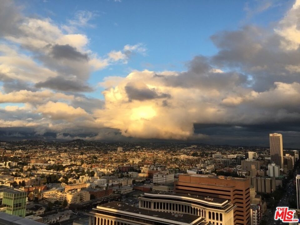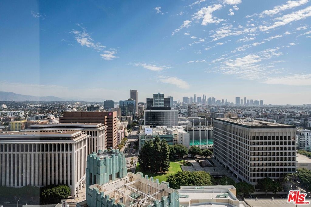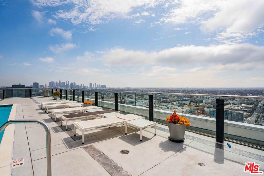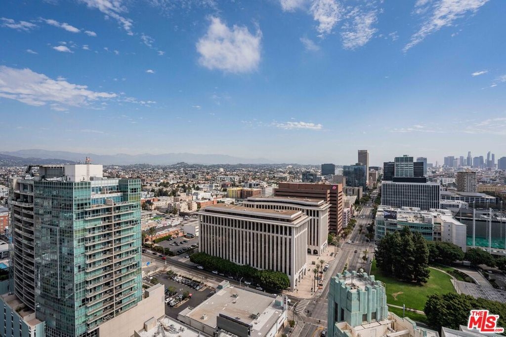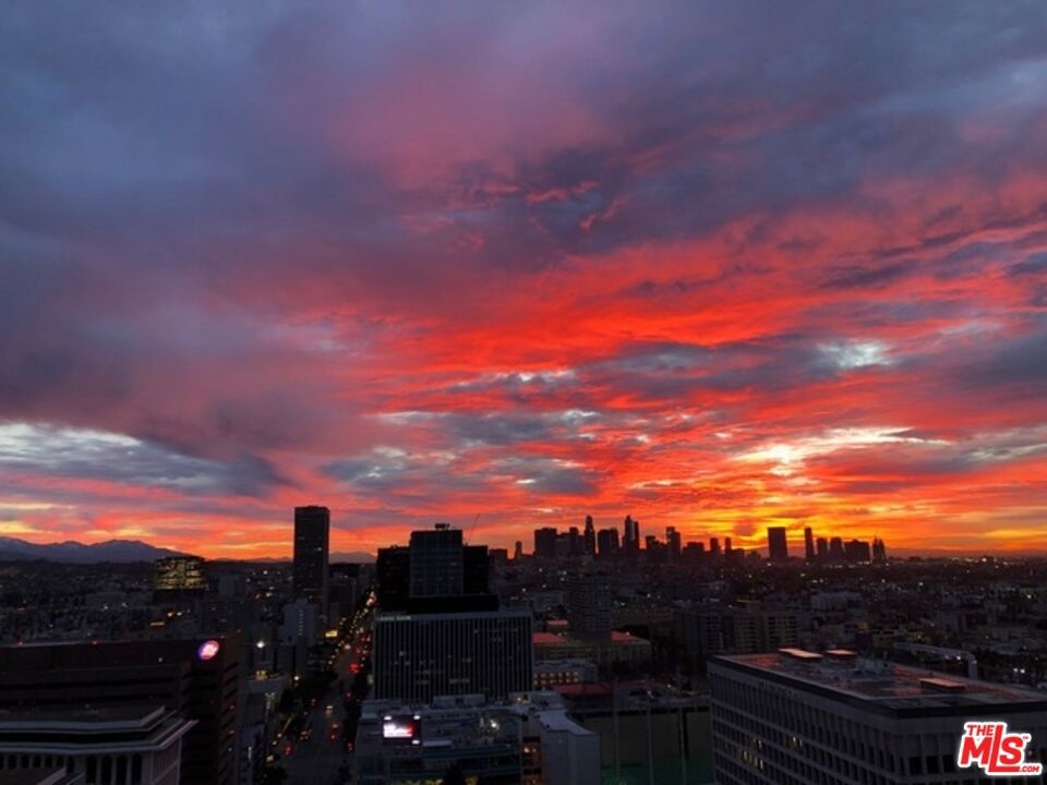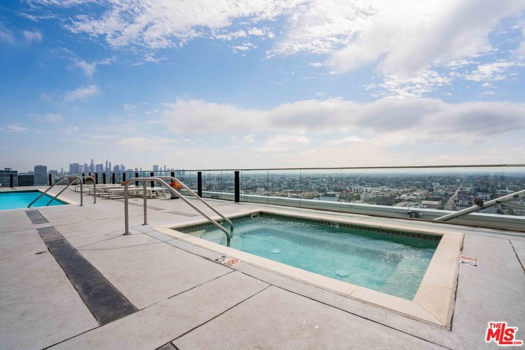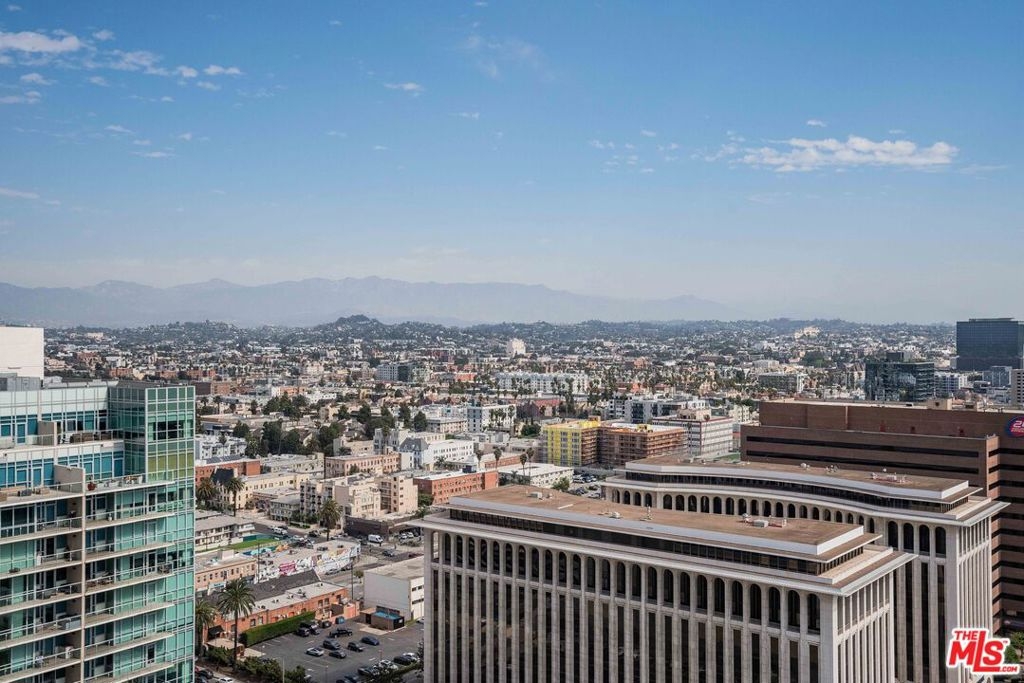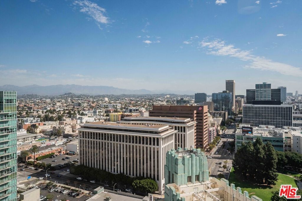 Peaceful, quiet 19th floor open floor plan apartment with lofted bedroom that overlooks the great room and Eastern view with enormous windows. This bright and cheerful 830 sq ft apartment features additional walk-in closet with custom lifted clothing bar. LG Smart washer/dryer is in laundry closet. Bathroom features orange Corian countertop and inset Kohler sink, set off by grey accent wall. Bathroom features grab bars in Kohler soaking tub/shower. All floors are bamboo; there is no carpeting. Unlike most 1 bedroom apartments, 1906 includes two deeded parking spaces. Only one wall is adjacent to another unit, as it is at end of hall way next to emergency fire stairwell. Sunrise is stunning; sunset is reflected as jewels on nearby glass buildings. Kitchen features GE stainless steel appliances and abundant storage. SkyDeck on roof features heated pool, spa, lounges, dining tables and chairs, barbeques, shade structures, fully equipped gym, restrooms, wifi and a no-pet lawn open from 5am to midnight. While in the pool you can see the ocean, downtown, and the Hollywood sign. Building has CCTV, gorgeous lobby has 24/7 staffing at front desk, and package room. Office of General Manager is on site. THE MERCURY was built by Getty Oil in 1962 by Claude Beelman using the most modern and expensive materials. It was converted into condominiums in 2006. HOA is low, building financials are strong. Subway is across the street, as are buses to Santa Monica, Malibu, downtown, Griffith Park and more. The Wiltern Theater is across the street; many trendy restuarants within a two blok walk. MaDang Plaze with multiplex is block away, as are two grocery stores. There is an assumable $156,000 mortgage at 2.75%.