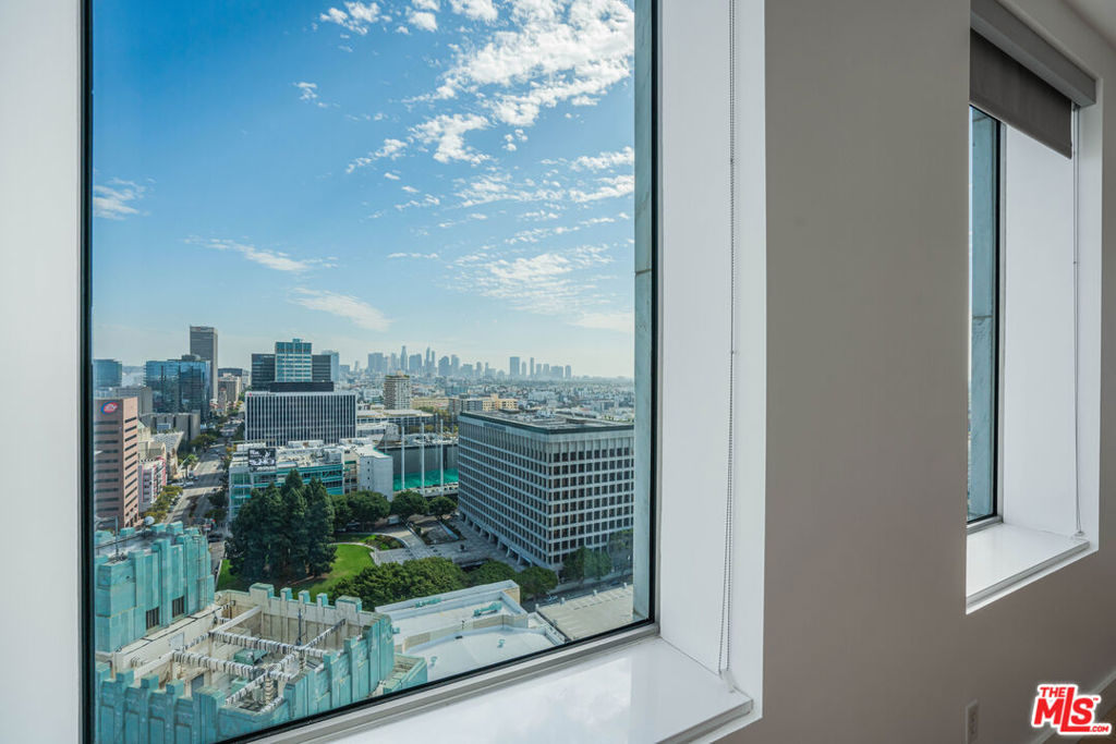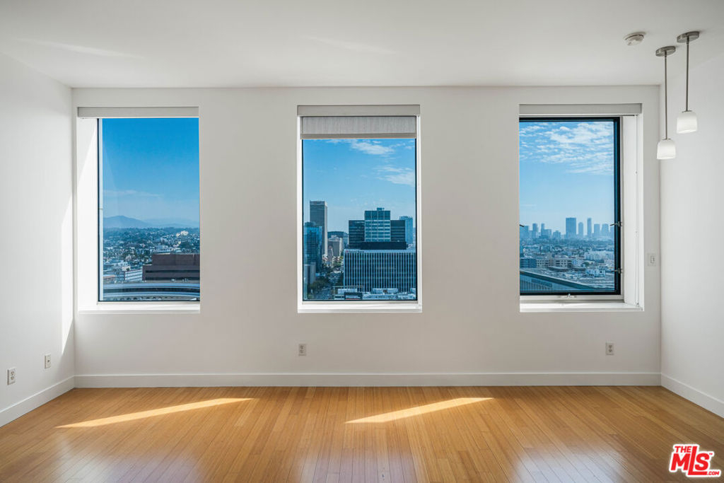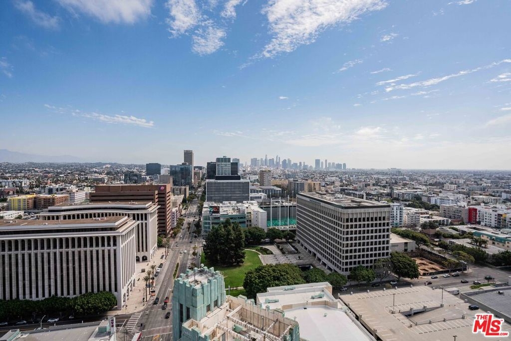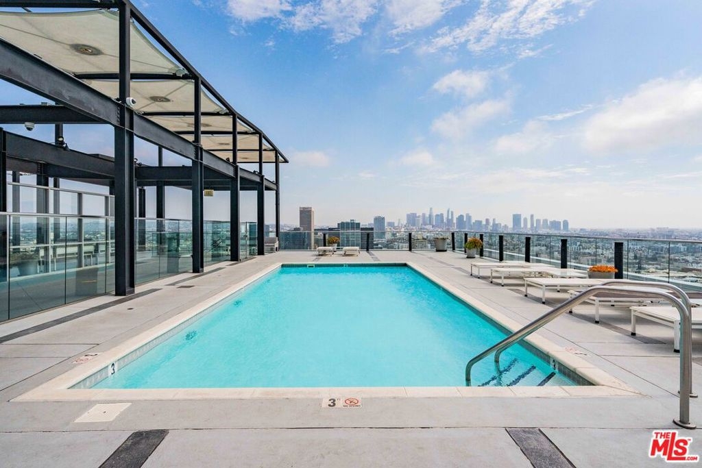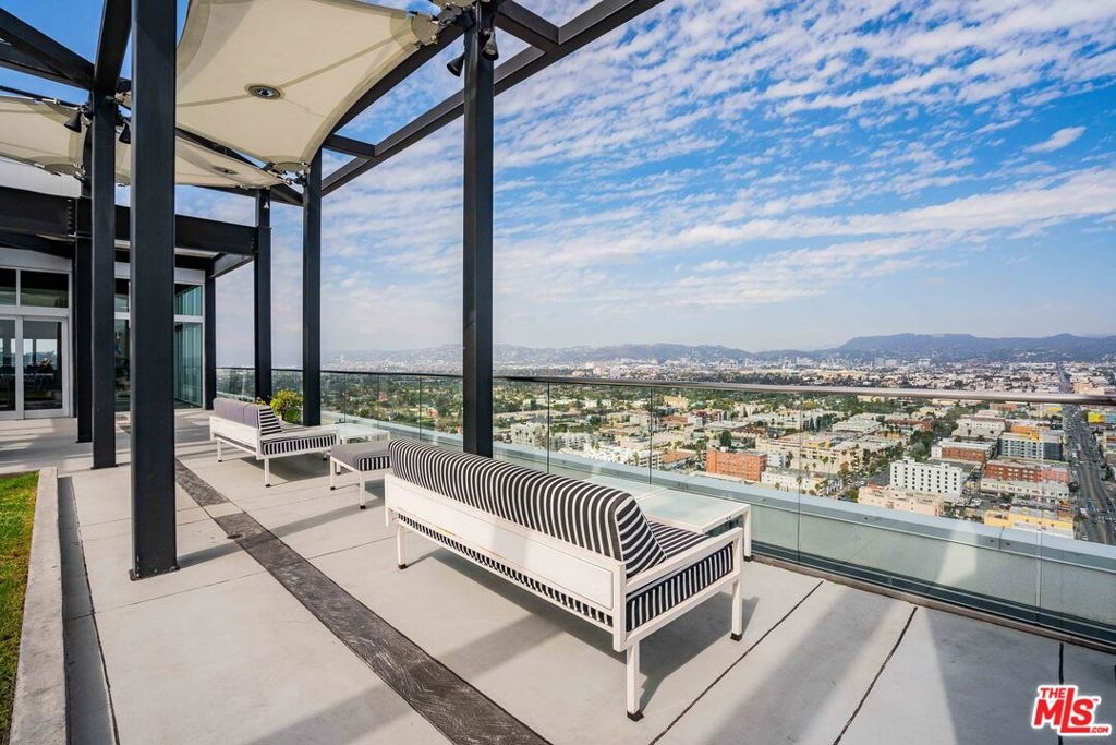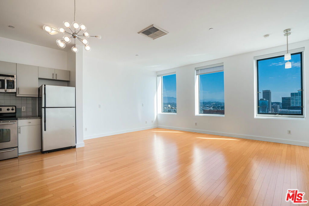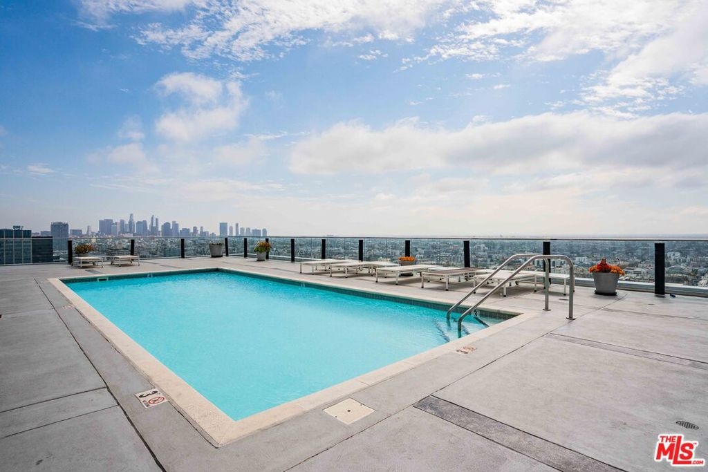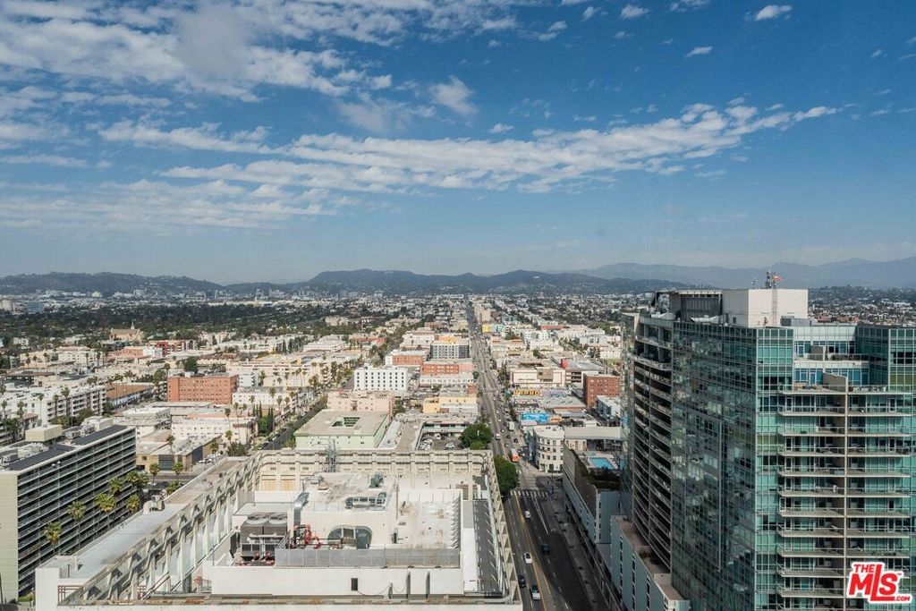 Peaceful, quiet 19th floor open floor plan apartment with lofted bedroom that overlooks the great room and Eastern view with enormous windows. This bright and cheerful 830 sq ft apartment features additional walk-in closet with custom lifted clothing bar. LG Smart washer/dryer is in laundry closet. Bathroom features orange Corian countertop and inset Kohler sink, set off by grey accent wall. Bathroom features grab bars in Kohler soaking tub/shower. All floors are bamboo; there is no carpeting. Unlike most 1 bedroom apartments, 1906 includes two deeded parking spaces. Only one wall is adjacent to another unit, as it is at end of hall way next to emergency fire stairwell. Sunrise is stunning; sunset is reflected as jewels on nearby glass buildings. Kitchen features GE stainless steel appliances and abundant storage. SkyDeck on roof features heated pool, spa, lounges, dining tables and chairs, barbeques, shade structures, fully equipped gym, restrooms, wifi and a no-pet lawn open from 5am to midnight. While in the pool you can see the ocean, downtown, and the Hollywood sign. Building has CCTV, gorgeous lobby has 24/7 staffing at front desk, and package room. Office of General Manager is on site. THE MERCURY was built by Getty Oil in 1962 by Claude Beelman using the most modern and expensive materials. It was converted into condominiums in 2006. HOA is low, building financials are strong. Subway is across the street, as are buses to Santa Monica, Malibu, downtown, Griffith Park and more. The Wiltern Theater is across the street; many trendy restuarants within a two blok walk. MaDang Plaze with multiplex is block away, as are two grocery stores. There is an assumable $156,000 mortgage at 2.75%.