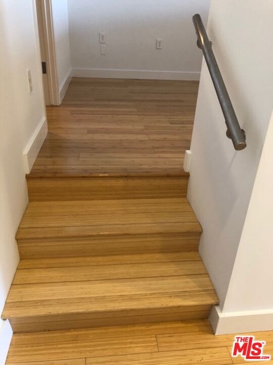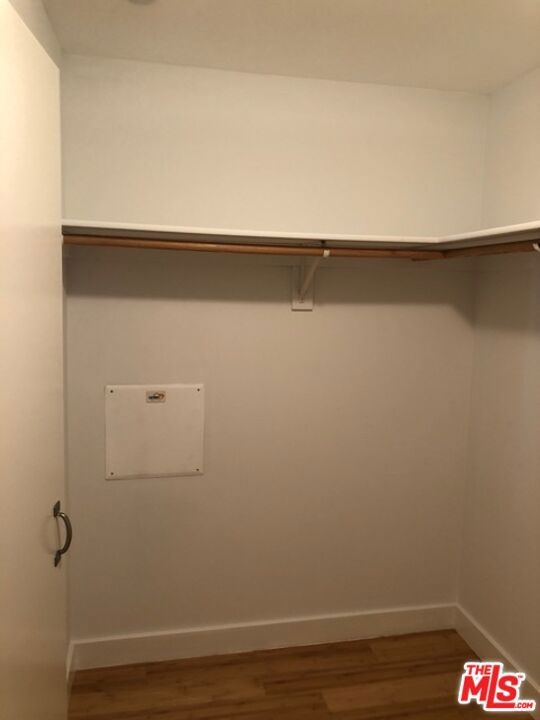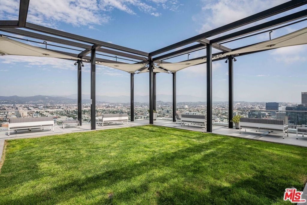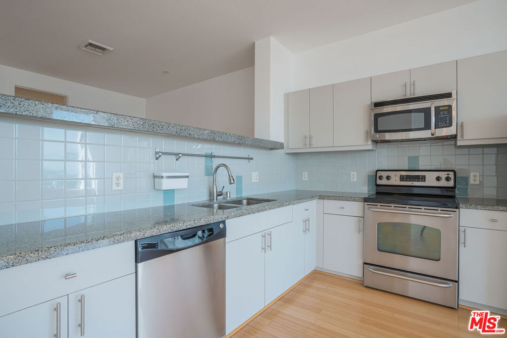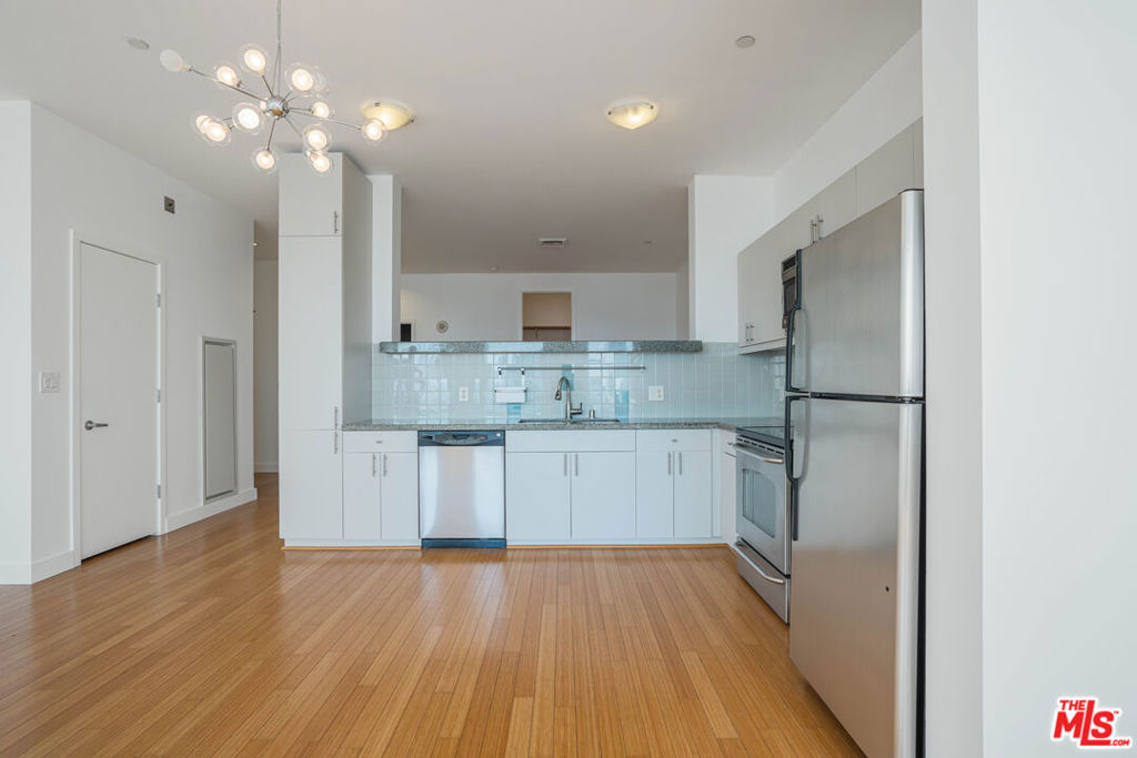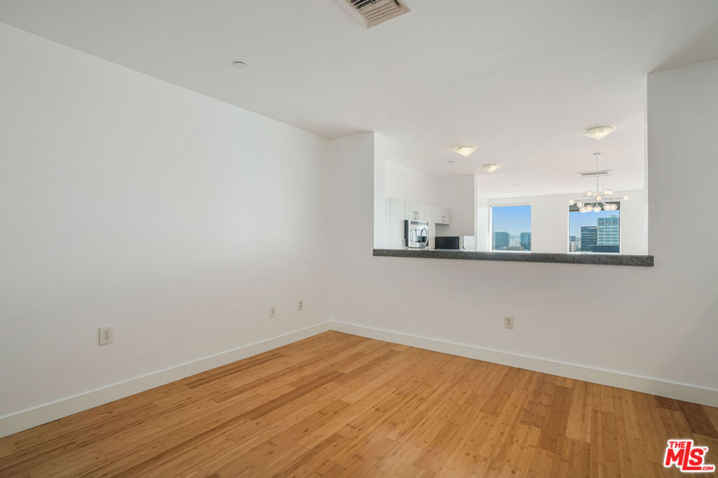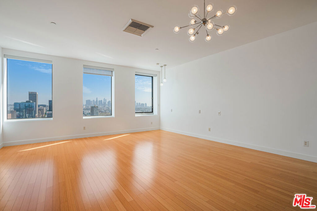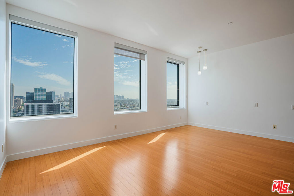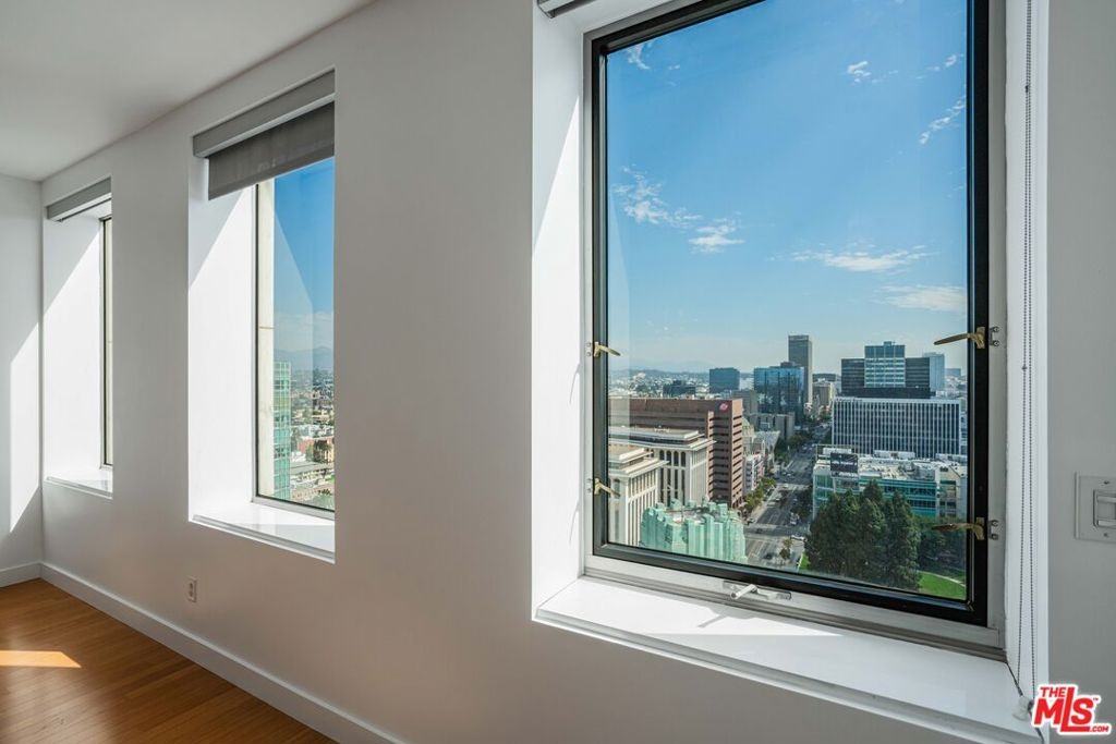 Peaceful, quiet 19th floor open floor plan apartment with lofted bedroom that overlooks the great room and Eastern view with enormous windows. This bright and cheerful 830 sq ft apartment features additional walk-in closet with custom lifted clothing bar. LG Smart washer/dryer is in laundry closet. Bathroom features orange Corian countertop and inset Kohler sink, set off by grey accent wall. Bathroom features grab bars in Kohler soaking tub/shower. All floors are bamboo; there is no carpeting. Unlike most 1 bedroom apartments, 1906 includes two deeded parking spaces. Only one wall is adjacent to another unit, as it is at end of hall way next to emergency fire stairwell. Sunrise is stunning; sunset is reflected as jewels on nearby glass buildings. Kitchen features GE stainless steel appliances and abundant storage. SkyDeck on roof features heated pool, spa, lounges, dining tables and chairs, barbeques, shade structures, fully equipped gym, restrooms, wifi and a no-pet lawn open from 5am to midnight. While in the pool you can see the ocean, downtown, and the Hollywood sign. Building has CCTV, gorgeous lobby has 24/7 staffing at front desk, and package room. Office of General Manager is on site. THE MERCURY was built by Getty Oil in 1962 by Claude Beelman using the most modern and expensive materials. It was converted into condominiums in 2006. HOA is low, building financials are strong. Subway is across the street, as are buses to Santa Monica, Malibu, downtown, Griffith Park and more. The Wiltern Theater is across the street; many trendy restuarants within a two blok walk. MaDang Plaze with multiplex is block away, as are two grocery stores. There is an assumable $156,000 mortgage at 2.75%.