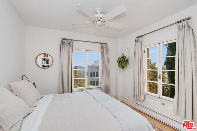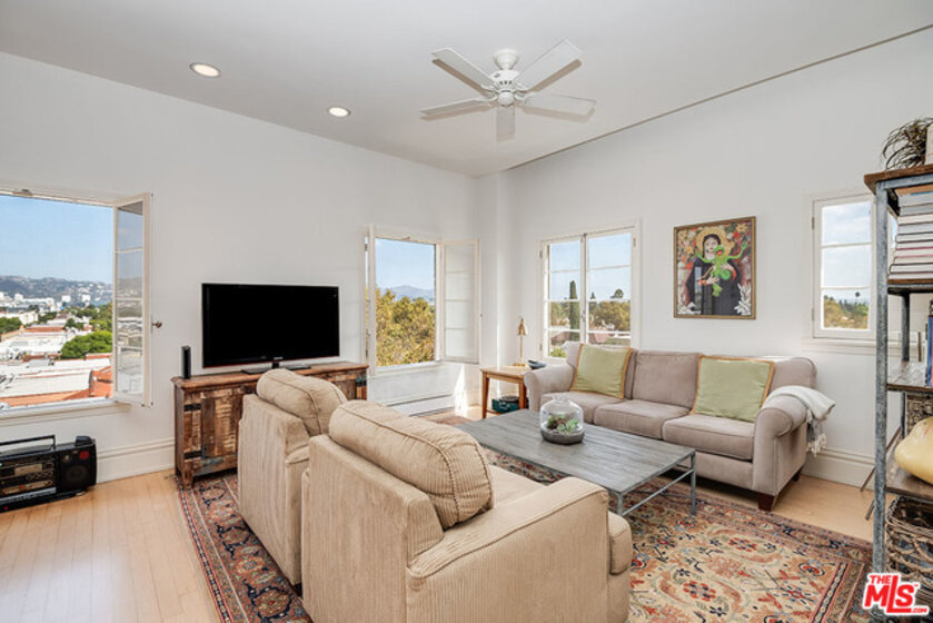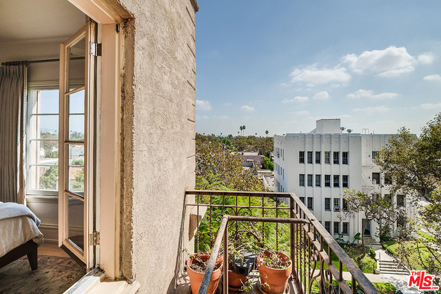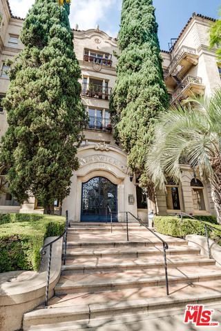 Rare opportunity to acquire an exquisite corner penthouse residence in the historic Warwick building. This stunning unit features soaring ceilings, a multitude of windows, and phenomenal views of the Hollywood sign, the Observatory, city lights, and mountains. The redone kitchen spills into the large romantic and sun-filled living room, and the bedroom opens to the rest of the unit, creating a very loft-like feeling. The renovated residence features light hardwood floors throughout and enough storage space for even the fanciest of fashionistas. The building has tremendous curb appeal, a lush courtyard, a private gym, and an entry out of an F. Scott Fitzgerald novel. Just blocks from the trendiest restaurants and shops on La Brea, you're in the middle of it all. If you want the feel of a Tribeca loft in an old Hollywood Los Angeles setting this is it!