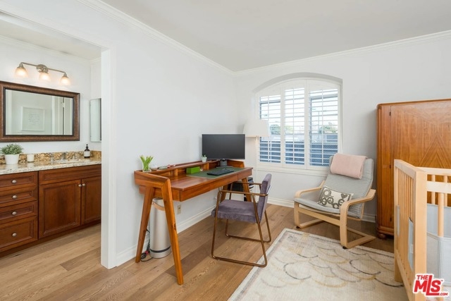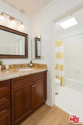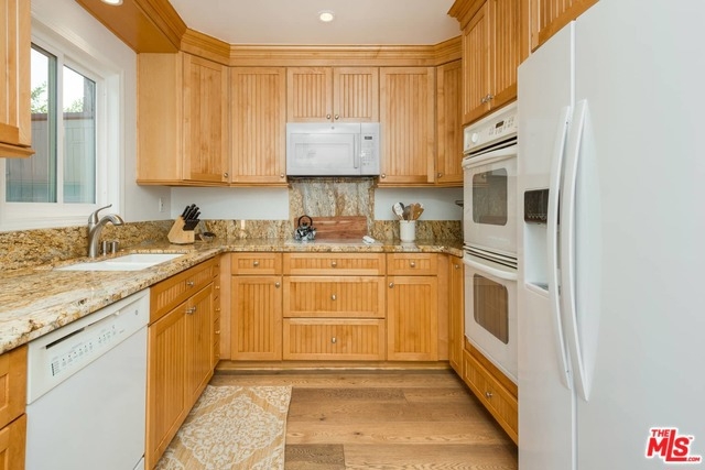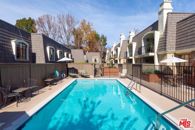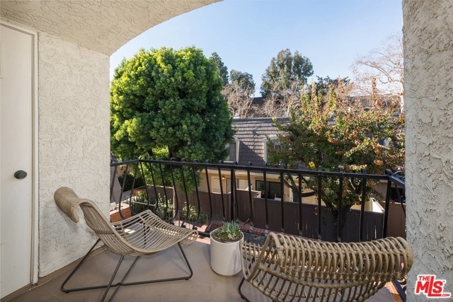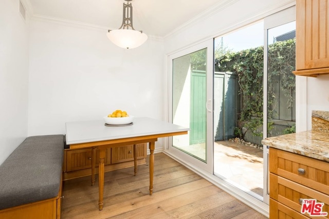 This beautiful townhome is light, bright and updated w/ 2 beds, 3 baths and 2 outdoor patios and newer, wide-plank, engineered, oak floors. The kitchen has granite counter tops, custom cabinetry, eat-in breakfast area, double oven, cooktop, dishwasher, newer microwave and fridge, and access to a verdant green patio. The living room is open to the dining area, and has a gas fireplace, sliding glass doors to an airy and fenced patio, and a guest powder bath downstairs. Both bedrooms are upstairs. The master has sliding glass doors to a nice balcony, plantation shutters, granite-topped vanity in the master bath, with a separate tub and shower. The second bedroom has its own en-suite with full bath, as well. Recently installed Nest thermostat, and Nest combination smoke and carbon dioxide detectors. This is a securely gated community, with heated pool and side-by-side parking. Situated in desirable Hancock Park, close to Larchmont Village, Wilshire Country Club and the LA Tennis Club.