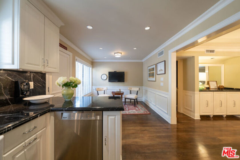 Exceptionally renovated two-story townhouse with separate entry. Located on a tree-lined block in Hancock Park featuring wood floors, gorgeous wainscotting, crown molding, recessed lighting, and high ceilings throughout. Upon entering you are greeted by 1 of 2 private patios. This lovely French Country style home boasts an open living area featuring a marble fireplace. A custom built-in shelving unit separates the family room and elevated formal dining room, making for a stunning first impression. Leading you to the sleek kitchen boasting crisp white cabinets, black marble counters, Viking appliances and an oversized breakfast area. The second, larger exclusive patio is accessible through the kitchen. 3 well-sized bedrooms and 2 bathrooms with marble accents await on the second story. The luxurious master retreat highlights a walk-in closet with ample built-in shelving, marbled bathroom, and neighborhood views from a discrete balcony. Amenities include: community pool, club room, two subterranean side-by-side parking spots and plenty of visitor parking! Conveniently located, this home presents a wonderful opportunity for those looking for prime real estate in 3rd street school district, near The LA Tennis club, Larchmont village and trendy Melrose Avenue.