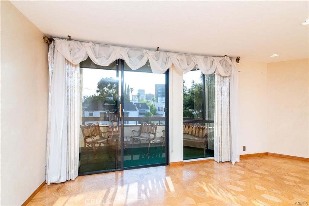 This luxury corner condo with panoramic views is a spacious 2 bedroom 2 bath in Wilshire Galleria, with an excellent floor plan featuring wood flooring, recently remodeled kitchen and bathrooms, private washer and dryer, an abundance of closet space with a custom built-in closets, 2 balconies for outdoor access from all rooms to see amazing sunsets and many custom finishes, including a famed Venetian plaster walls, designer drapes and blinds, natural wood cabinets, stainless appliances, double sinks and art designed bathrooms. Use central air conditioner and heater or keep the windows open to enjoy a nice breeze, if preferred. Incredibly convenient location within the building, close to 2 car gated parking spaces, lobby, elevator, emergency exit and additional private storage space. Located in the heart of Miracle Mile the building’s amenities include secured entrance with spacious lobby, swimming pool, hot tub, sauna, courtyard and extra guest parking make this a perfect home. Walk and explore LACMA and the local museums, La Brea Tar Pits, Farmers Market, The Grove, great restaurants, local parks and so much more!