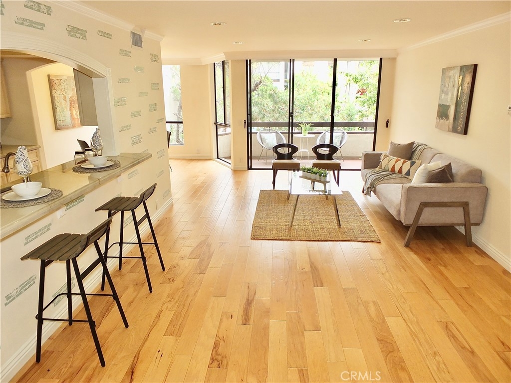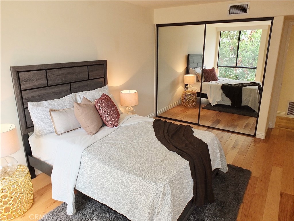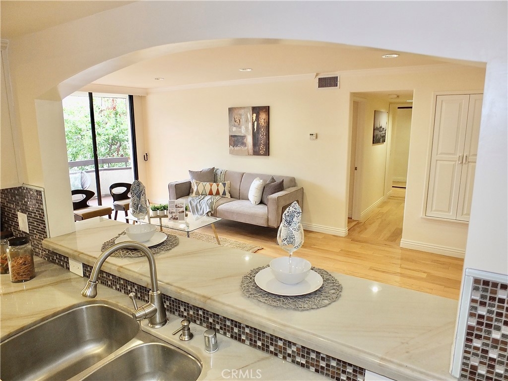 Fantastic light, bright & airy Wilshire Galleria condo in Miracle Mile! This upgraded 2 bedroom, 2 bath unit is an ideal interior end unit; its location overlooks green trees, as well as the relaxing courtyard and pool. The kitchen upgrades include a wonderful French Country-style kitchen with marble counters, stainless steel appliances (dishwasher, refrigerator, microwave, and stove), self-closing drawers/cabinets, and an open wall cut out which allows an open view of the living room and entry. Quality hardwood floors throughout and stylishly updated bathrooms. The high end, stackable washer/dryer are conveniently located inside the unit. The central air-conditioning cools you down in these hot LA summer days when you are not lounging poolside! Enjoy coveted 2-car SIDE-BY-SIDE parking in the gated subterranean parking area, which is conveniently located near the lobby and elevator. Additional storage is also included just off the garage area. There is guest parking in the garage area as well. The complex offers resort-like amenities including pool, spa, air-conditioned lobby lounge area with security access, and on-site property manager. And you can’t beat the location…enjoy all of the nearby hot spots including LACMA, La Brea Tar Pits, George Page Museum, Beverly Center, Farmers Market, The Grove, restaurants, cafes & more!