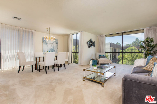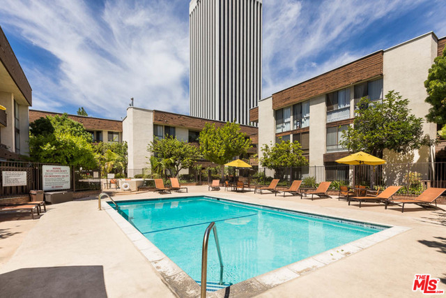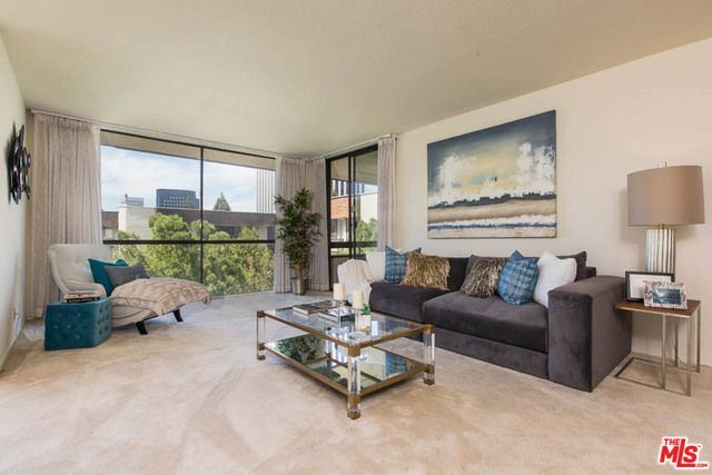 This unbelievably bright, top floor & corner unit features 2 bedrooms, 2 bathrooms, and a den! A spectacular property with nearly 1700 SF also has a fantastic floorplan. Great room and den open to a private patio and have a view of trees and pool below. Generously sized master has multiple closets including a walk-in and big master bath. Spacious eat-in kitchen has ample cabinets. A/C unit is only two years old and the washer is brand new. Floor to ceiling windows. The unit has two side-by-side parking spaces plus an enclosed storage area. Gated garage comes with 40+ guest spaces and 30+ security cameras on site. Pool, spa, sauna, security access and on-site management are all part of this wonderful Wilshire Galleria complex. Centrally located in Miracle Mile which includes Museum Row, LACMA, LA Brea Tar Pits and more!