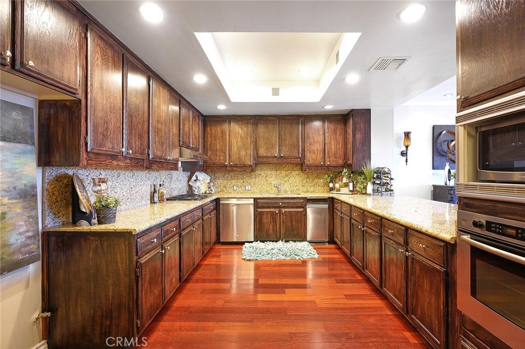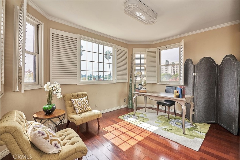 ** Gorgeous corner unit condo located in Prime Hancock Park area, very convenint location to close Koreatown, LACMA, the Larchmont villages, Grove ** Open and spacious floor plan with 2 bed & 2 bath with convertible den ** Marble fireplace opens to balcony with city light view, engineered hardwood floors, en-suite master bedroom with own balcony access, high ceiling, kitchen with custom wood cabinetry and granite countertops with breakfast bar, washer / dryer in the closet ** Assigned 2 side by side parking space & guest parking with ample storage **