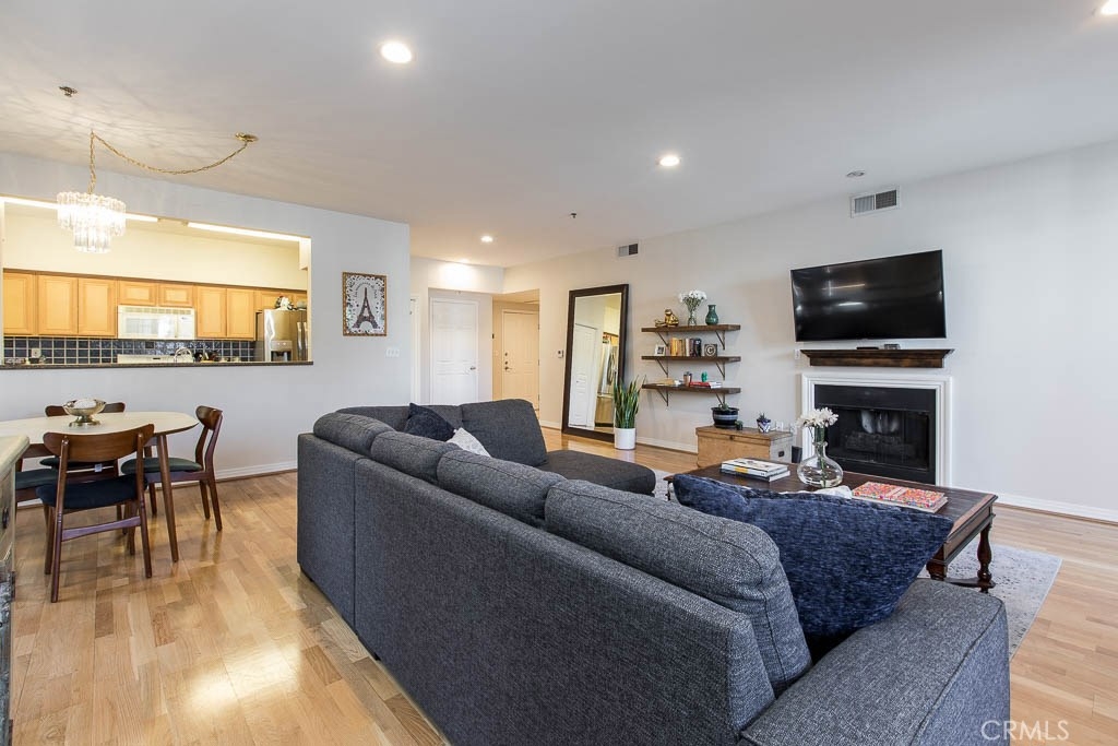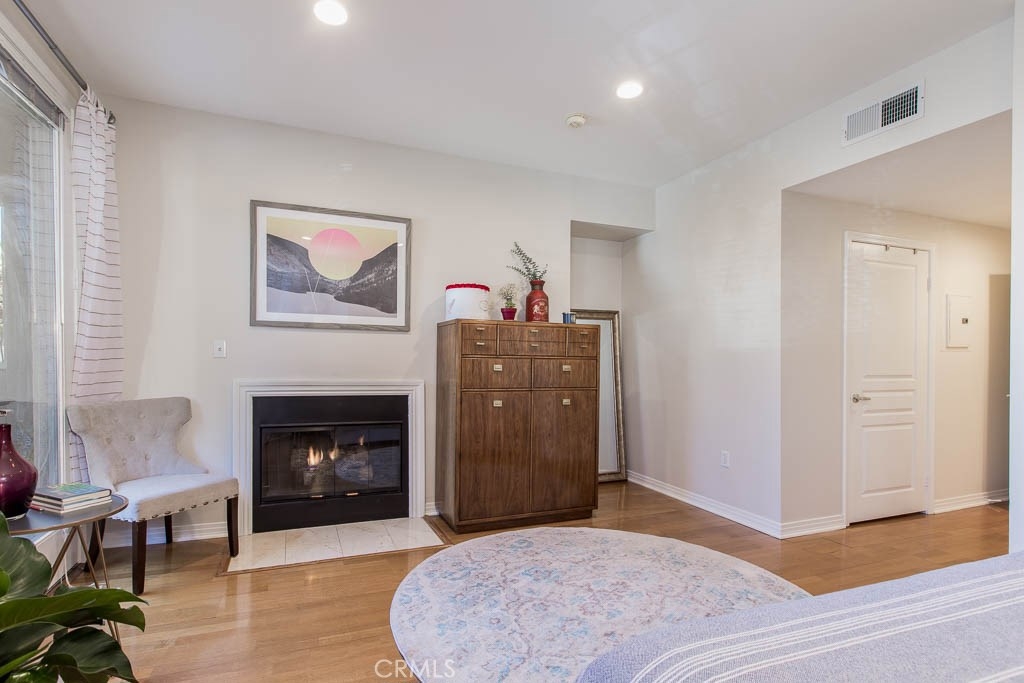 Beautiful trendy home in one of the most desirable condo complexes in Wilshire Center. Light and bright 2 bedrooms, 2 bathrooms condo, with a bonus home office room. Spacious open kitchen with granite counters. Master retreat features fireplace, ensuite full bathroom, walk-in closet, and access to balcony. Dual fireplace, central A/C, laundry in unit, recessed lights throughout. Private balcony in front of unit and private patio off the living room. 2 parking spaces. Pets are allowed. Great location close to shops, restaurants, nightlife, and downtown.