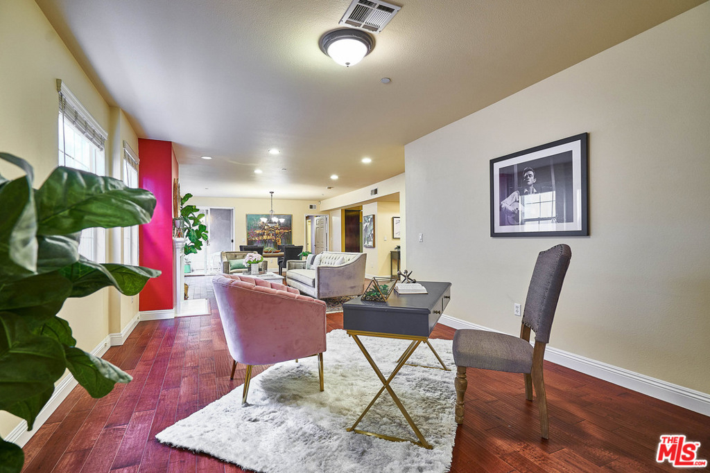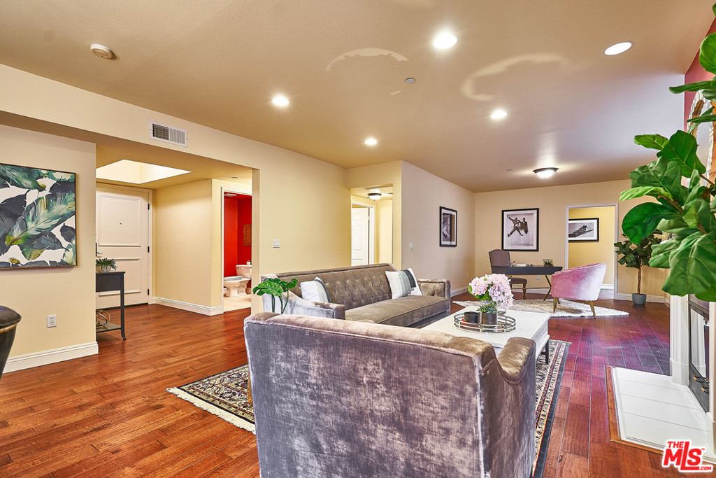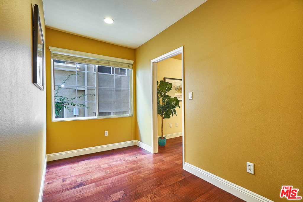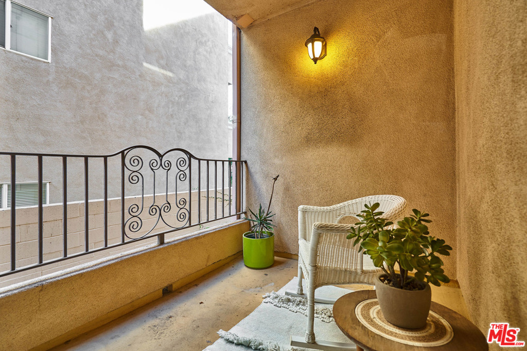 Hancock Park Spacious and luxurious 2 bed + den with 2.5 baths. Corner unit with no shared walls. Formal entry with Double doors. Granite countertops and stainless steel appliances in Kitchen. Huge living room with den area that can easily be partitioned or walled off to be used a 3rd bedroom. Hardwood floors in every room. The private corner unit is on the quiet backside of the building away from the Wilton street side. Master bedroom has a private balcony off the rear of the building and huge his and hers walk in closets. Second balcony is off the dining room area. Plenty of storage and cabinet space throughout. Separate laundry room. Private storage shed in garage in front of the 2 Tandem parking spaces. Come see this wonderful unit!