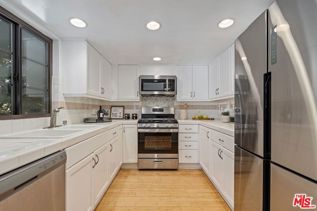 Experience the best of Los Angeles living in this bright and stylish townhome-style condo, ideally located near Beverly Center and The Grove. This spacious 2-bedroom, 3-bath home features high ceilings, abundant natural light, and a seamless blend of comfort and modern design all complemented by stunning city and hillside views. Enjoy your private rooftop deck with panoramic Hollywood Hills vistas the perfect spot to relax, entertain, or take in the beautiful morning and sunset skyline. The primary bedroom also overlooks the Hollywood Hills, offering a peaceful retreat at any time of day.Recent upgrades include stainless steel appliances (refrigerator, oven, dishwasher, washer & dryer). The home also features secured entry, two-car parking, central A/C, and convenient direct entry from both the garage and front entrance. The well-maintained, gated community is quiet and secure, offering guest parking and comprehensive HOA coverage all with a reasonable monthly fee. Just steps from trendy cafes, restaurants, and boutique shops, and minutes to West Hollywood and Beverly Hills, this home perfectly combines style, comfort, and prime location ready for you to move right in!