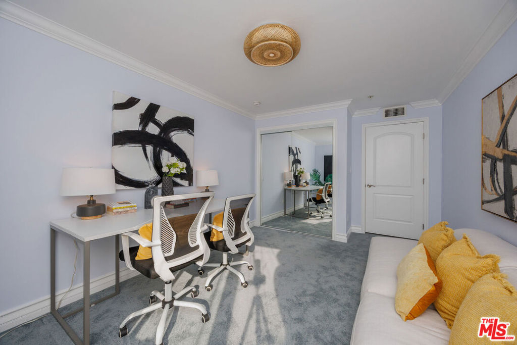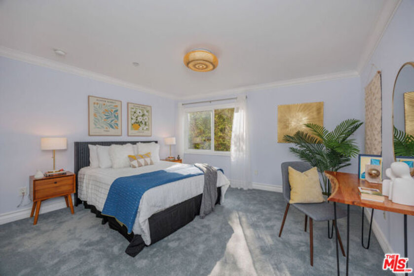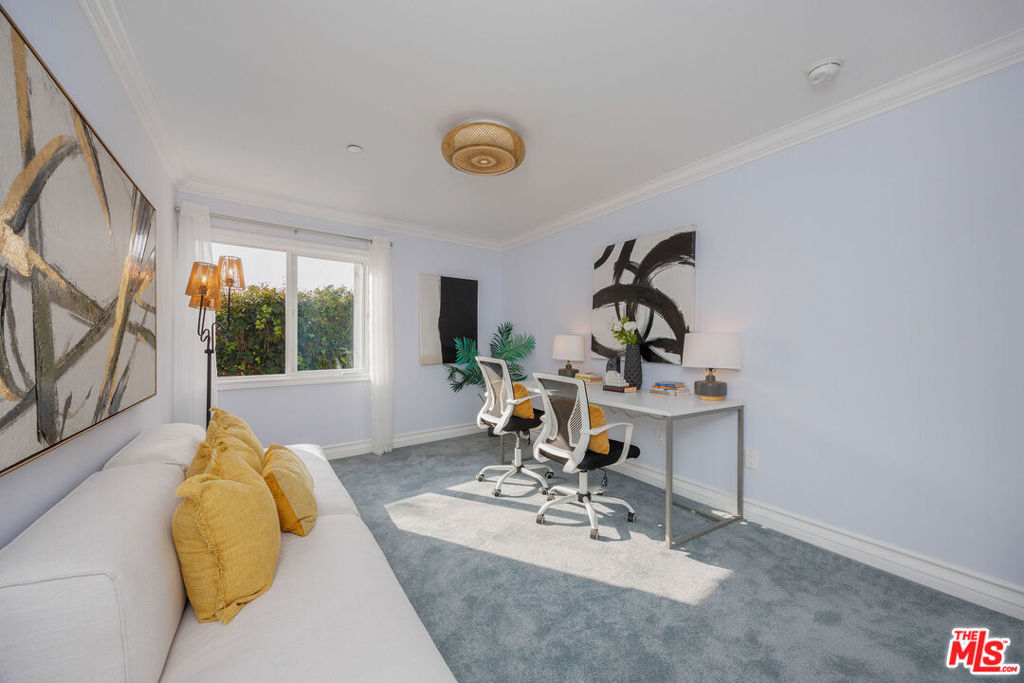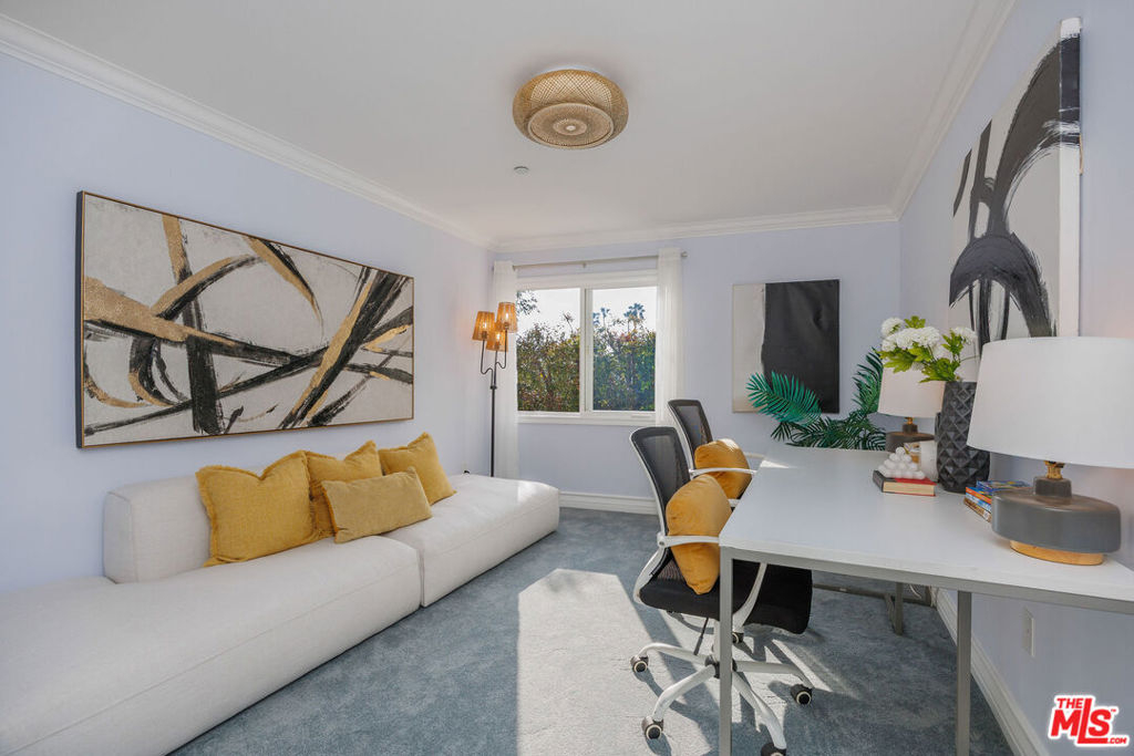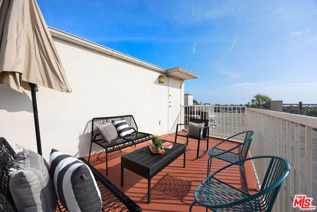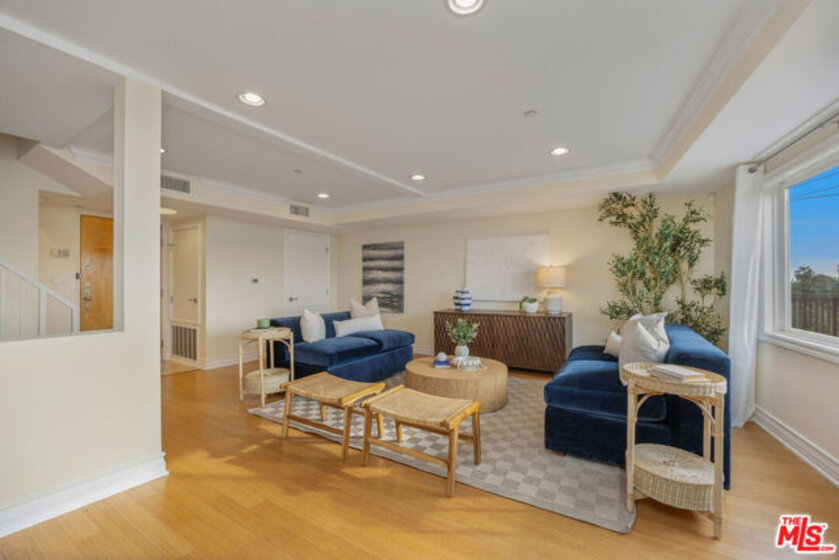 Perched on the top floor of a newer 2004 building on a quiet Westwood street, this rare corner two-story penthouse offers over 2,000 square feet of refined, house-like living. This three bedroom, two and a half bath residence is filled with beautiful natural light and refreshing breezes while capturing sweeping panoramic views, spectacular sunsets, and offering access to a private rooftop deck. Thoughtfully designed for both comfortable daily living and elegant entertaining, the main level highlights the spacious open floor plan that seamlessly connects the living room, den, balcony, dining area, and chef's kitchen. The kitchen features a breakfast bar and top-brand appliances, including a Viking Professional range and dishwasher, creating a perfect space for cooking and gathering. The lower level features a spacious primary suite with its own private entrance, generous closet space, and a well-appointed bathroom. Two additional generously-sized bedrooms, a second full bathroom, and convenient side-by-side laundry complete the home's comfortable and thoughtfully designed living spaces. This exceptional penthouse offers a peaceful retreat from the pace of city life while remaining moments from UCLA, Century City Mall, Beverly Hills, Los Angeles Country Club, Rancho Park Golf Course, premier shopping, and some of the Westside's most popular dining destinations.