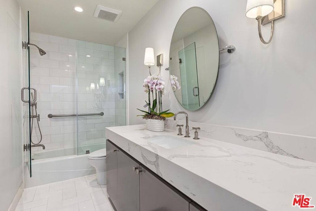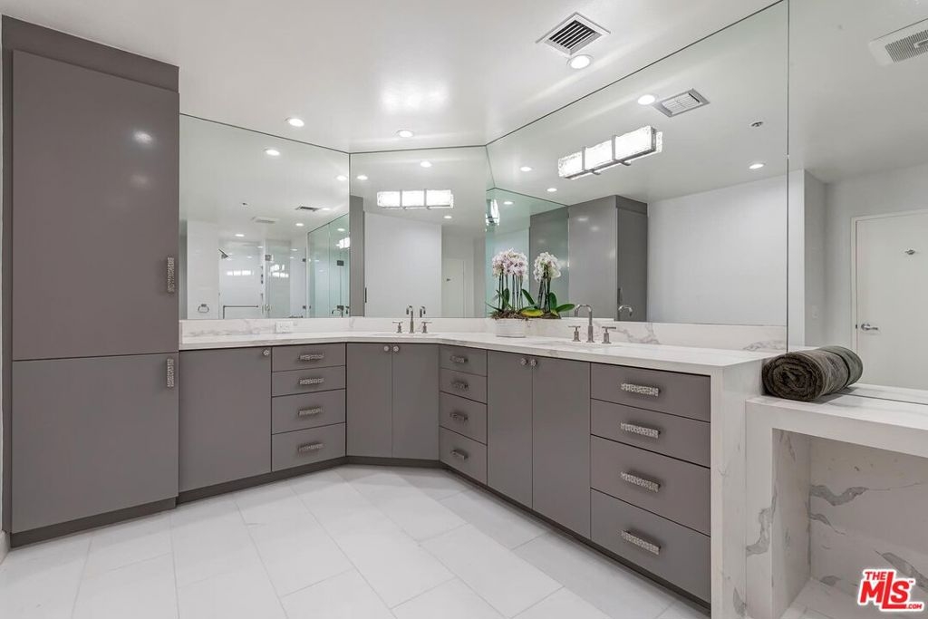 If you've seen this unit before, you won't recognize it now. Recently and tastefully redone spaces filled with natural light featuring gorgeous light-wood floors, high ceilings, remodeled kitchen/baths, and the obligatory striking views of the hillsides, greenery, city lights, and the iconic Wilshire Corridor. Fantastic open floor plan for entertaining. Great room with large living and dining areas including a fireplace and wet bar opens to the main view balcony. Separate beautiful newer powder room. True cook's kitchen with top stainless appliances and quaint breakfast area flowing to a second view balcony. Massive primary suite with a large sitting/office area opens to the second view balcony. The suite also exhibits an exquisitely redone modern bathroom, a large walk-in closet, and newly added wall closets. Sizable guest bedroom suite on the opposite side of the unit also has a redone bathroom, views, and main balcony access. The architecturally significant full-service Mirabella complex is located in the premiere eastern section of the Wilshire Corridor one block West of Beverly Glen Blvd and proximate to the best of Beverly Hills, Century City, and the Westside. Amenities include EV charging stations, 24 hour valet, concierge, on-site management, fitness center, pool, spa, extra storage, EQ Insurance, and a fabulous multipurpose facility with a fully-equipped kitchen. Recently renovated hallways and elevators, one of the prettiest lobbies/foyers on the Corridor, and easy ingress/egress from Holmby Ave south of Wilshire Blvd add to the already strong appeal of the Mirabella.