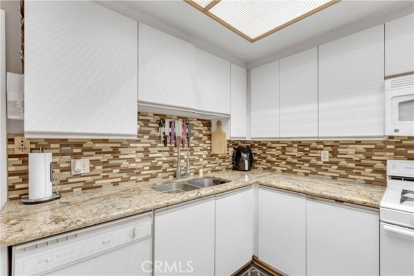 Great priced 2 bedroom condo in a beautiful Westwood neighborhood! Spacious, open Floor plan feels much larger than it is! Don’t miss out on seeing this best priced condo in this area. This roomy 2-bedroom, 2.5-bath condo is located on an elevated first floor raised above ground level. This 1,443 open-concept layout features an oversized living room with a cozy fireplace and large windows that fill the space with natural light. The living room has balcony access with space to sit outside and enjoy the sunshine and serene neighborhood. The living room flows seamlessly into the kitchen, which includes breakfast area seating, granite counters and bright, white cabinetry and convenient stackable washer and dryer. A separate, formal dining room adorned with built-in shelving is ideal for large gatherings or can be converted into an office. Both bedrooms are en-suite, offering privacy and comfort of having their own bathrooms as well as separate access to the outdoor balcony. The primary suite also boasts a walk-in closet and spacious bathroom with dual sinks. Additional features include central air and heat, recessed lighting, and a remodeled half bathroom convenient for guests. The building includes secured entry, gated tandem parking for 2 cars, and is in a prime location near UCLA, Westwood Village, Century City, and Beverly Hills. Low HOA fees. Enjoy the best of Westside living—whether you're looking for a serene home base or a sophisticated urban lifestyle, this condo has it all.