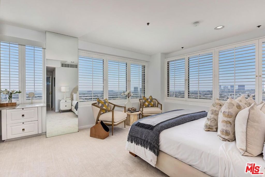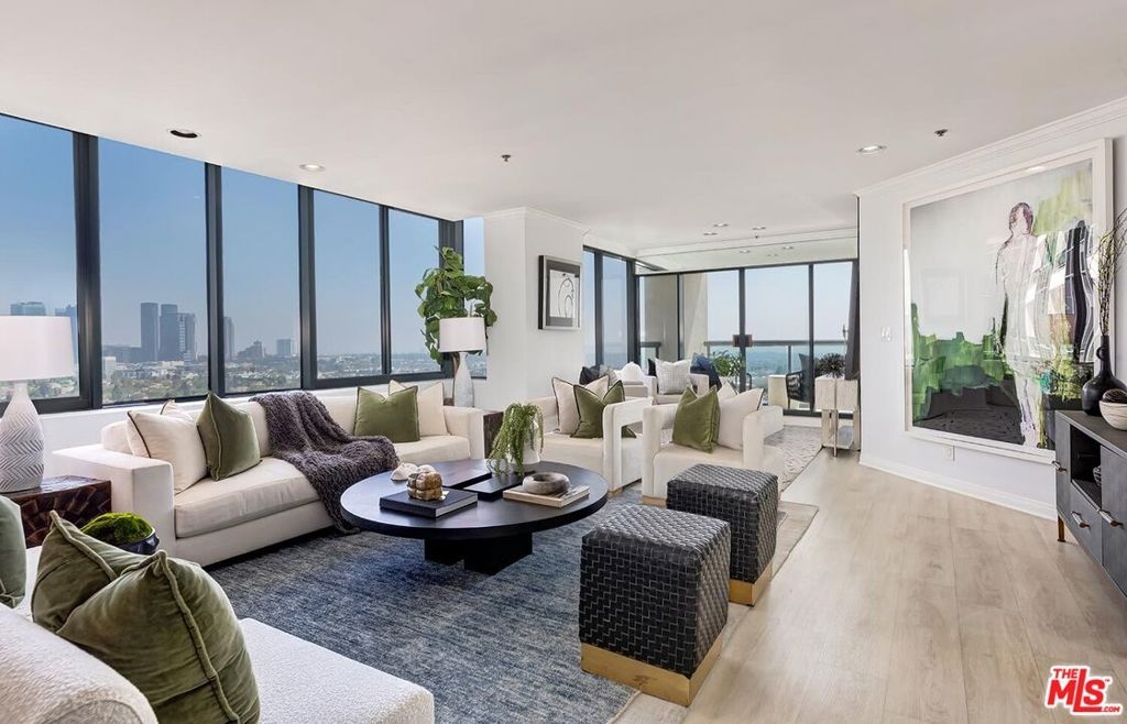 This exquisite, sophisticated tower condominium is a true pinnacle of luxury high rise living, ideally situated along the prestigious Wilshire Corridor with unparalleled access to Beverly Hills, Century City, Westwood, and the vibrant arts, culture, dining, and entertainment of the Westside. A stunning formal marble entry leads to a grand open living room with expansive windows and doors opening to an outdoor balcony that boasts breathtaking city-to-ocean views. The elegant dining area features a custom wet bar, while the chef's granite kitchen with breakfast area is perfect for culinary enthusiasts. Three luxurious bedroom suites, custom blinds, and ample storage closets complete the space. Gorgeous marble and wood flooring, high ceilings, built-ins, and moldings enhance the sophisticated atmosphere. The southern-facing balcony is ideal for indoor/outdoor entertaining, offering both privacy and panoramic views. This full-service building provides 24-hour security, doorman, valet parking, a pool, spa, a state-of-the-art gym, and a banquet room. The gorgeous lobby features several areas perfect for entertaining guests. This home offers the pinnacle of upscale California living in one of the most coveted locations in Los Angeles.