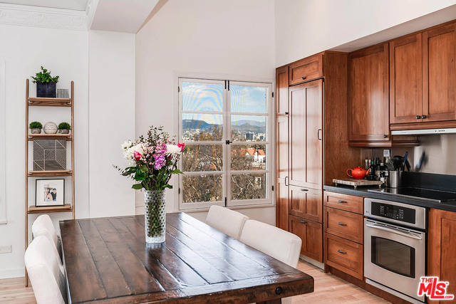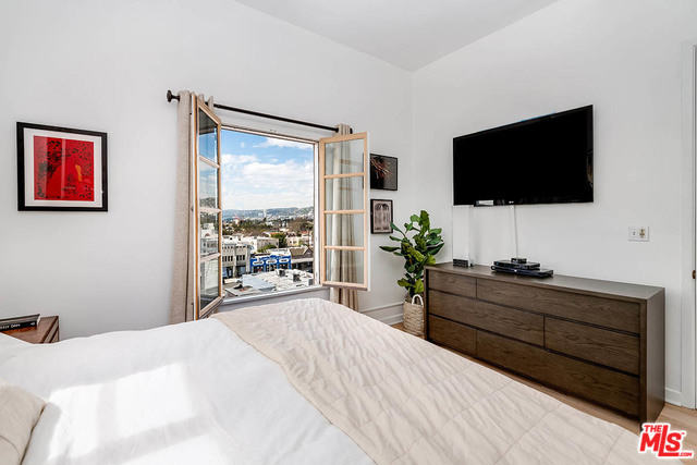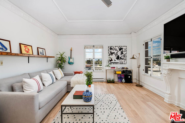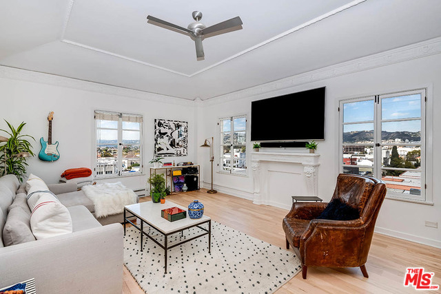 Rare opportunity to acquire an exquisite corner two-bedroom penthouse residence in the historic Warwick building. The stunning living room features soaring ceilings, incredible original moldings and period detail work, a multitude of windows, new light wood floors, and phenomenal views of city lights, sunsets, the Hollywood sign and mountains. The redone kitchen features custom cabinetry and opens to the living room, creating a lofty, open entertaining space. There is a great master bedroom with excellent views, and the second bedroom could also serve as a media room or den. The building has tremendous curb appeal, a lush courtyard, a private gym, and an entry out of an F. Scott Fitzgerald novel. Just blocks from the trendiest restaurants and shops on La Brea, you're in the middle of it all. If you want the feel of an old Hollywood Los Angeles setting this is it.