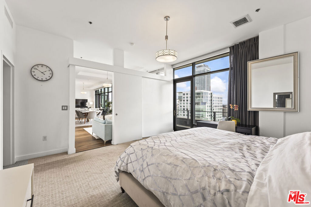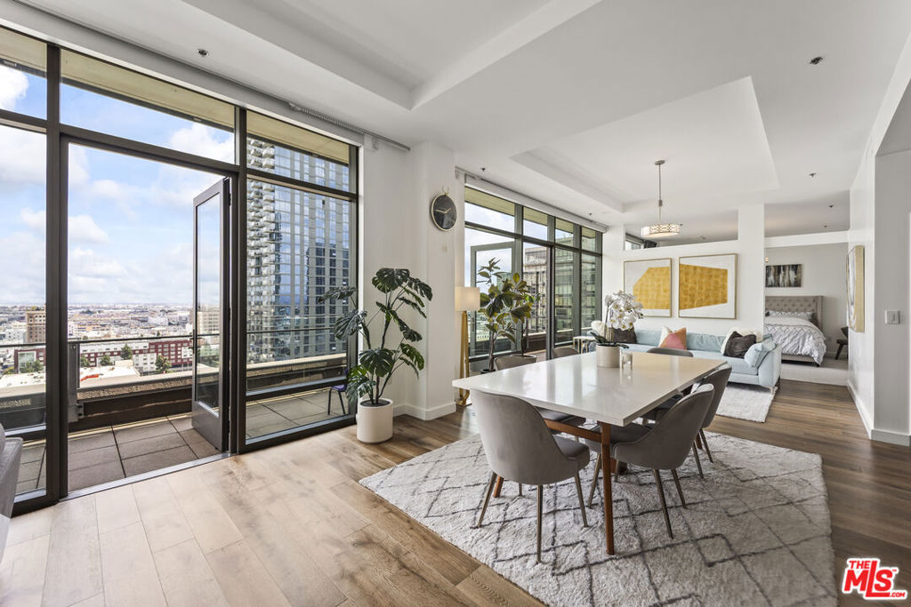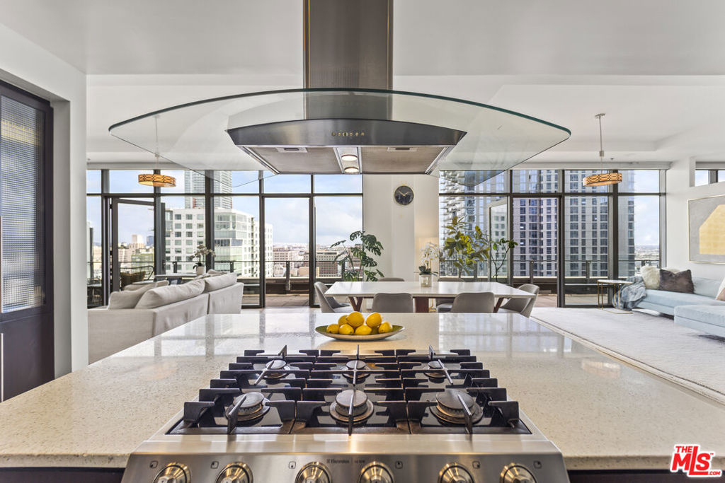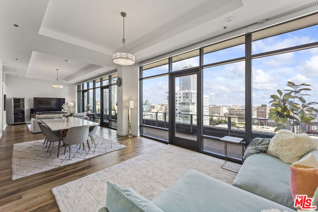 An exceptional Turn-key, very Light Bright Penthouse condo with 2 bedroom, 3 bath in the prestigous South Park neighborhood of downtown Los Angeles. Wow, this rare East facing unit has massive breathtaking panoramic views of the downtown Los Angeles Skyline and Santa Monica Mountains & is perfect for entertaining all your family and friends. High volume ceilings featuring floor to ceiling windows have built-in electronic shades and a Massive Sun-drenched balcony running entire length of condo. Stunning Primary Bedroom features an ensuite full bath with separate tub and shower, custom walk-in closet and blackout curtains. Spacious 2nd bedroom also have large en-suite bathroom and walk-in closet. Gourmet kitchen includes all stainless steel appliances, Large breakfast bar & dining area and adjacent laundry room!! This is truly a beautiful space with great energy and views that are unmatched. 2 blocks from Crypto.com Arena and close proximity to the best hotels, bars, shops and museums. Ralphs and Whole Foods are only few blocks away and there's a farmers market every Saturday a block away. Wonderfully equipped gym and fitness room! Has it all, swimming pool, hot tub, 4 Viking Grills, picnic area and garden on the terrace floor. This is a LEED certified building and is a Must see.