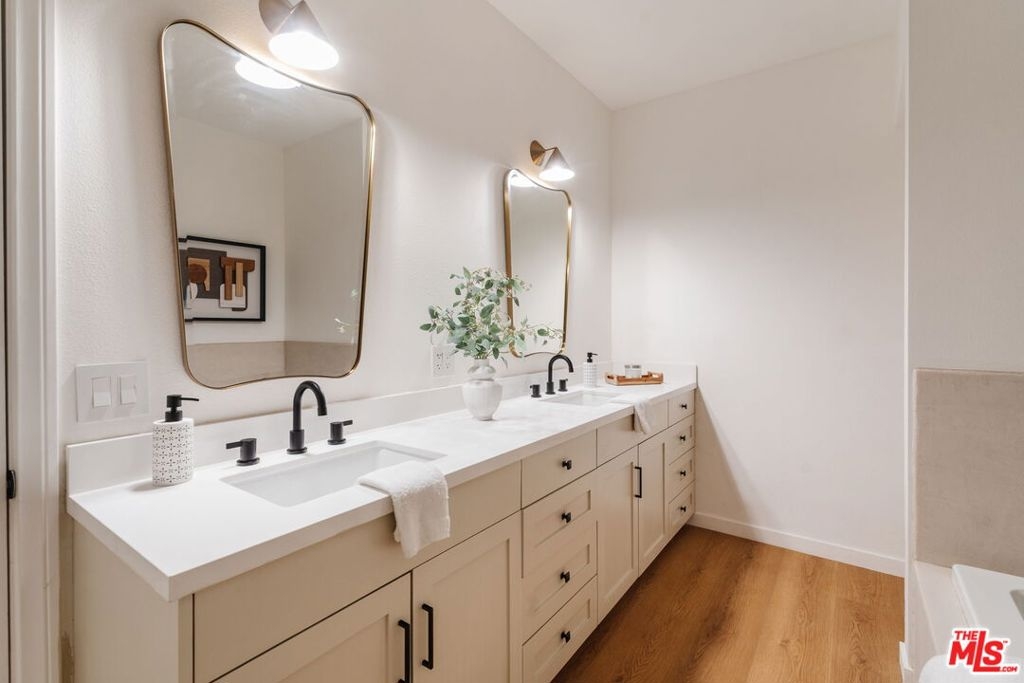 Positioned in the heart of Brentwood, this expansive and beautifully remodeled front-facing residence offers the scale, light, and flow rarely found in condominium living. Set on the second floor and framed by mature treetops, the home enjoys a serene, elevated outlook within a secure and well-maintained building delivering the privacy and ease of a single-family feel with the convenience of an urban lifestyle. The thoughtfully designed layout spans just under 1,700 square feet and features a generous open-concept living and dining area anchored by high ceilings, abundant natural light, and a fireplace that creates warmth and dimension. The kitchen has been reimagined with custom cabinetry, quality finishes, and a seamless connection to the main living space, making it ideal for both everyday living and effortless entertaining. Two spacious bedrooms and two well-appointed bathrooms provide comfort and flexibility, while in-unit laundry, ample storage, and refined details throughout reflect careful attention to design and functionality. Additional highlights include secure gated entry, assigned parking, and a welcoming residential community. Located just moments from Brentwood Village, steps from La La Land Cafe and Layla's Bagels, and minutes from the beaches of Santa Monica, this residence offers an exceptional blend of space, style, and walkable conveniencealong with easy access to the 405 for seamless connectivity across Los Angeles. A polished Brentwood offering that truly stands out.